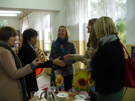 BANIE MAZ. 1 października do Gminnej Biblioteki Publicznej w Baniach Mazurskich przybyli bibliotekarze z Norwegii w ramach projektu polsko-norweskiego "Biblioteka miejscem spotkań wielu kultur". Goście zwiedzili cerkiew greckokatolicką pod wezwaniem św. Mikołaja, w której zostali serdecznie przyjęci przez proboszcza o. Pawła M. Starucha OSBM. Poznali specyfikę i tradycje obrządku greckokatolickiego oraz wysłuchali pieśni liturgicznej w wykonaniu chóru kościelnego. W spotkaniu wzięli udział: pełniąca obowiązki wójta gminy Banie Mazurskie Irena Łobacz, przewodnicząca miejscowej rady gminy Krystyna Kokolus, proboszcz parafii Narodzenia Najświętszej Maryi Panny w Żabinie ks. Andrzej Domański , dyrektor ZPO Banie Mazurskie Zdzisław Bernatowicz, dyrektor Banku Spółdzielczego w Baniach Mazurskich Halina Kunio, komendant Straży Miejskiej w Gołdapi Paweł Werchowicz i dyrektor Biblioteki Publicznej w Gołdapi Mirosław Słapik. Następnie bibliotekarze norwescy przeszli główną ulicą Bań Mazurskich do lokalu biblioteki. Były rozmowy, wymiana doświadczeń na polu bibliotekarskim, słodki poczęstunek oraz upominki. Szkoda, że spotkanie trwało tak krótko, ale z przedstawicielami z Norwegii miały się spotkać kolejne biblioteki z partnerstwa gołdapskiego.