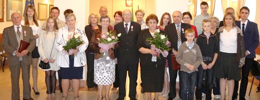 GOŁDAP. Medale za Długoletnie Pożycie Małżeńskie, przyznane przez prezydenta RP Bronisława Komorowskiego, wręczył dziś trzem parom burmistrz Marek Miros. Uroczystość z udziałem jubilatów i ich rodzin odbyła się po południu w Urzędzie Miejskim.
