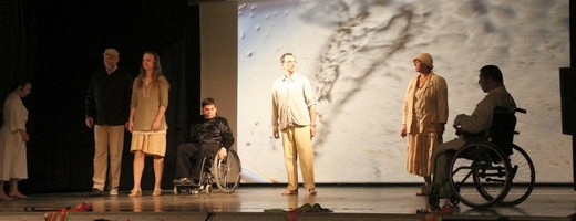GOŁDAP. XIII Międzynarodowy Przegląd Małych Form Teatralnych Osób Niepełnosprawnych, zorganizowany przez Warsztaty Terapii Zajęciowej w Gołdapi, odbył się w wczoraj w sali widowiskowej Domu Kultury. Swoje umiejętności zaprezentowało 9 zespołów, w tym dwa zagraniczne. Występy były ocenione przez jury. Przegląd zdecydowanie wygrało przedstawienie pt. „Miłość bez śmierci na wydmach" w wykonaniu Stowarzyszenia Osób Niepełnosprawnych w Wilnie. Jury nie miało żądnych wątpliwości w tym przypadku. Dyskusje były nad kolejnymi dwoma miejscami. Ostatecznie drugie miejsce zajęły Warsztaty Terapii Zajęciowej z Olszewa Węgorzewskiego („Historia jednej znajomości"), trzecie łotewskie Alukskie Stowarzyszenie Inwalidów w Aluks („Opowieść o rzepce").