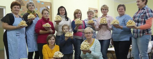 GOŁDAP. Warsztaty kulinarne odbyły się dziś w Szkole Podstawowej nr 2 w Gołdapi. Członkinie Stowarzyszenia Żytkiejmska Struga: Bożena Mikielska i Dorota Hołodowska, uczyły kilkanaście pań wykonywać ciasto nazywane mrowiskiem. Po przygotowaniu ciast był czas na poczęstunek. Na stole pojawiła się babka ziemniaczana, swojski chleb i ser podpuszczkowy. Warsztaty zostały przeprowadzone w ramach projektu „Poznaje, rozwijam się, tworzę... To tutaj się urodziłem, tutaj mój dom!", realizowanego przez gołdapskie Stowarzyszenie „Szkoła pod lasem".