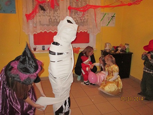 SIEDLISKO. 31 października w świetlicy w Siedlisku już po raz kolejny świętowaliśmy Halloween. Włożyliśmy dużo pracy w przygotowania i organizację tego dnia, ale warto było! Efekty można zobaczyć na zdjęciach. Przystrojona sala jak i przebrania uczestników mówią same za siebie. Zabawę rozpoczęliśmy od przybliżenia zwyczaju Halloween, następnie uczestniczki świetlicy przedstawiły inscenizację. Nie zabrakło konkursów i zabaw takich jak: mumia, turlanie dyni głową, chwytanie smakołyków, zabawy rysunkowe, balony z zadaniem, kalambury, taniec z miotłą, prezentację strojów oraz poszukiwanie skarbów i szukanie słodkości schowanych w różnych zakamarkach naszej świetlicy. Bawiliśmy się świetnie i nikt nie opuścił naszej świetlicy bez nagród i łakoci. Bardzo dziękujemy za obecność mam, które uświetniły ten dzień swoją obecnością.