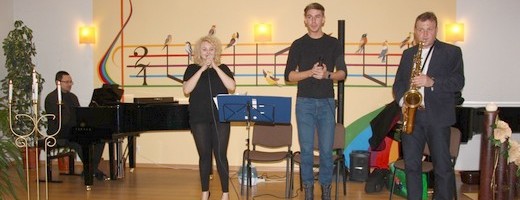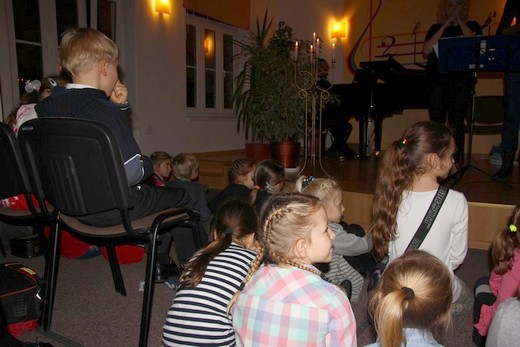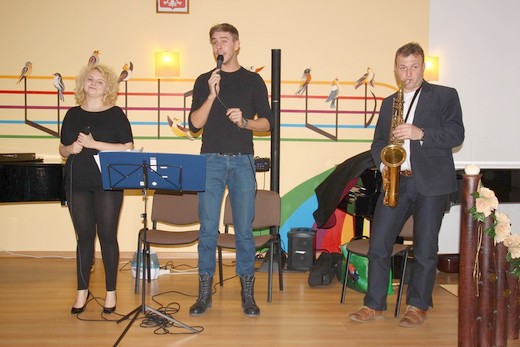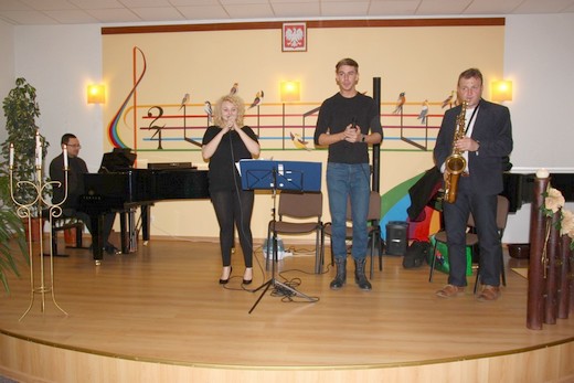 GOŁDAP. Występ muzyków Filharmonii Narodowej w Państwowej Szkole Muzycznej I st. w Gołdapi został celowo skierowany do dwóch grup adresatów. 18 listopada o godz. 16.00 muzycy: Martyna Ciok i Kamil Zięba - wokal, Michał Bobrowski - saksofon oraz Adam Sychowski - fortepian, przybliżyli dzieciom historię polskiej piosenki, a można było usłyszeć m.in.: „Nie dokazuj", „Moje serce to jest muzyk" i ciekawy miks utworów grupy Skaldowie. Do dorosłych natomiast skierowano piosenki o bajkowych postaciach, m.in. Piotrusiu Panu i Smerfach. Tradycyjnie zaprezentowany repertuar bardzo spodobał się zarówno starszym i młodszym melomanom.
