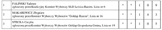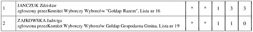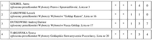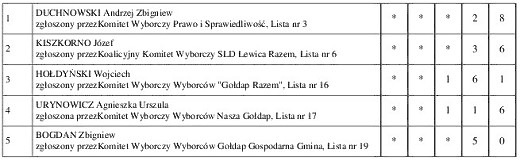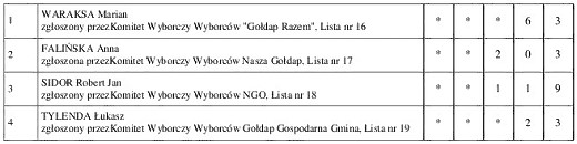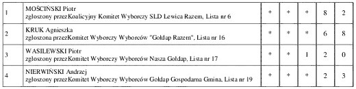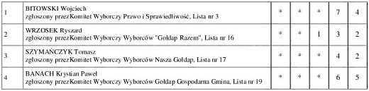 GOŁDAP. Przedstawiamy państwu konkretne wyniki uzyskane przez poszczególnych kandydatów w wyborach do rady miejskiej w Gołdapi.