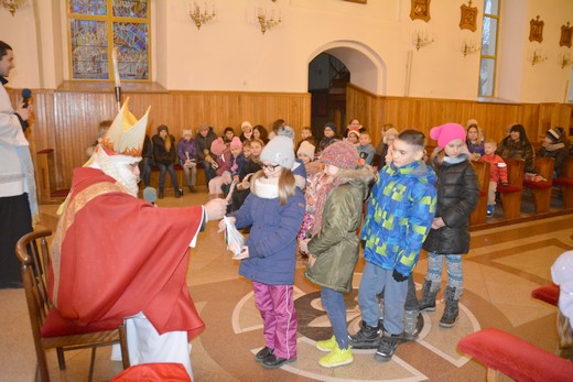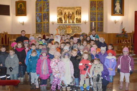 GOŁDAP. Dzisiejszy dzień jest szczególny, zwłaszcza dla najmłodszych, ponieważ co roku 6 grudnia odwiedza ich św. Mikołaj. Tego roku nie ominął między innymi kościoła NMP w Gołdapi. Rano zjawił się u nas, gdzie oczekiwało go mnóstwo dzieci. Wraz z nimi zaśpiewaliśmy Mikołajowi piosenkę, a on każdemu dziecku wręczył paczki. Spotkanie z Mikołajem cieszyło się powodzeniem i sprawiło wielką radość, nie tylko dzieciom.