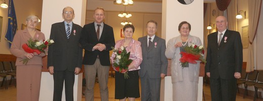 GOŁDAP. W imieniu prezydenta RP Bronisława Komorowskiego, burmistrz Gołdapi Tomasz Luto odznaczył dziś trzy pary małżeńskie Medalami za Długoletnie Pożycie małżeńskie. Otrzymali je: