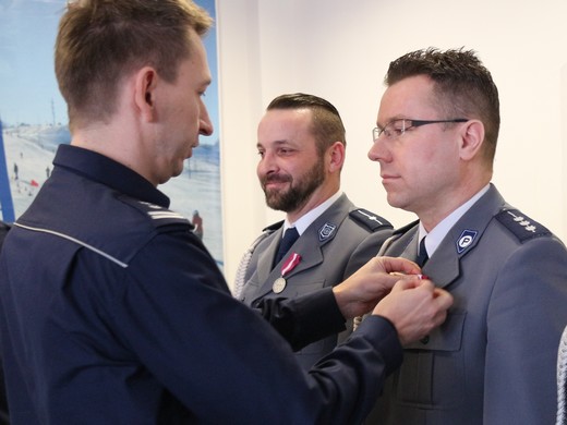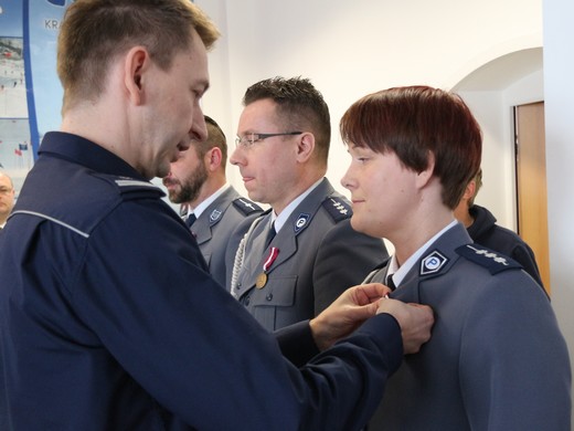 GOŁDAP. Prezydent RP wyróżnił Medalem Srebrnym za Długoletnią Służbę mł. asp. Marcina Buczyńskiego i Medalem Brązowym za Długoletnią Służbę st. asp. Krzysztofa Zarębę. Minister spraw wewnętrznych wyróżnił Brązową Odznaką „Zasłużony Policjant" st. asp. Martę Andruczyk. Odznaczenia zostały wręczone funkcjonariuszom wczoraj przez zastępcę komendanta wojewódzkiego policji w Olsztynie mł. insp. Andrzeja Zielonkę.