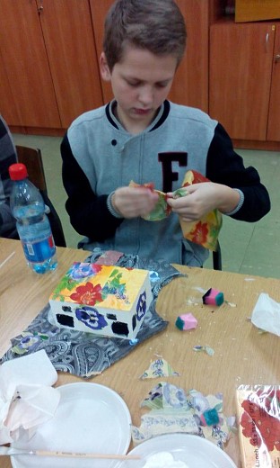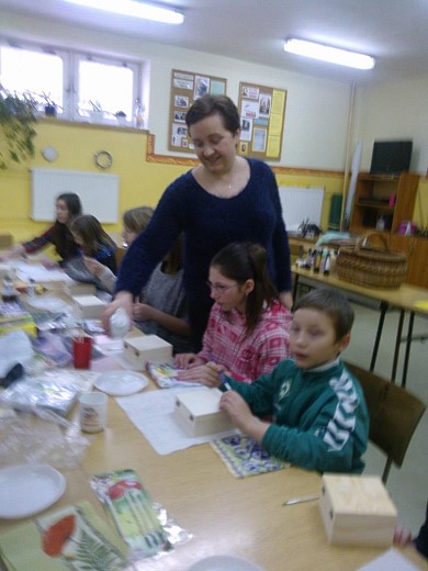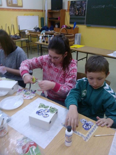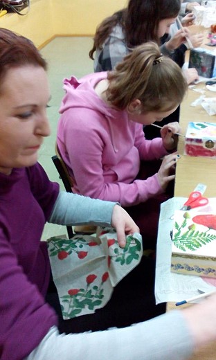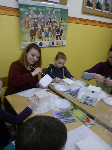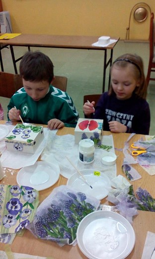 GOŁDAP. 28 stycznia w Szkole Podstawowej nr 2 odbyły się warsztaty decoupage czyli ozdabiania różnych powierzchni poprzez naklejanie wzoru wyciętego z papieru lub papierowej serwetki. Tym razem uczestnicy ozdobili według własnego pomysłu drewniane szkatułki, które później zabrali do domu. Humory dopisywały. Zarówno dzieci, jak i dorośli dobrze się bawili. Warsztaty odbyły się w ramach projektu „Poznaję, rozwijam się, tworzę... To tutaj się urodziłem, tutaj mój dom!" realizowanego przez Stowarzyszenie „Szkoła pod lasem".