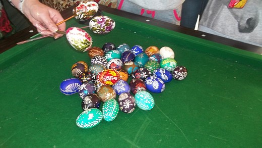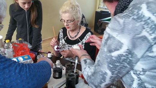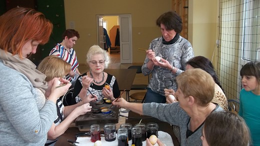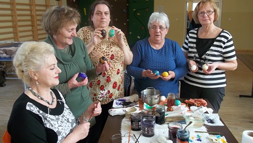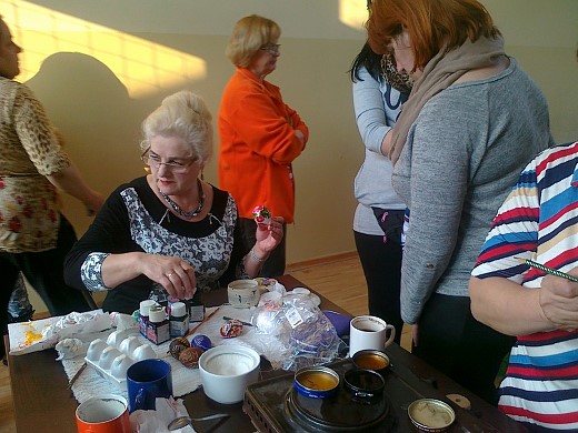 GOŁDAP. W środowe popołudnie galwiecką świetlicę odwiedziła znana gołdapska malarka Cecylia Buczyńska-Buza. Podczas kilkugodzinnych zajęć podzieliła się z mieszkankami wsi swoimi wspaniałymi umiejętnościami w tworzeniu kolorowych jaj wielkanocnych. Zebrane panie uczyły się od podstaw kilku technik zdobienia jaj, a efekty tej nauki widać na zdjęciach. Warsztaty zorganizowane zostały przez Stowarzyszenie „Fabryka Cudów" przy współpracy ze świetlicą wiejską w Galwieciach w ramach projektu „Warsztaty rękodzieła i twórczości regionalnej".