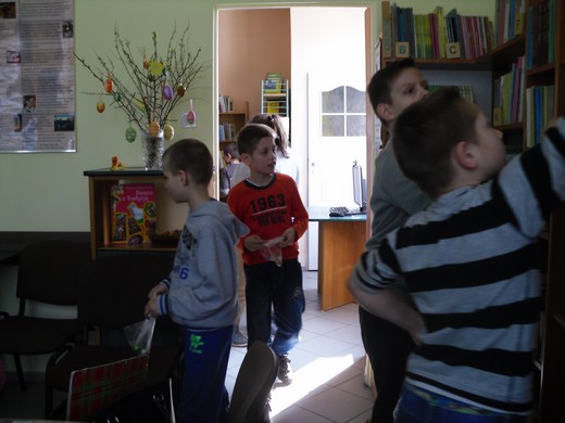 GRABOWO. Wielkanoc to święto pełne tradycji i obyczajów. Poszukiwanie przez dzieci pochowanych jajek i słodyczy (które oczywiście zostawił zajączek) jest w naszym kraju coraz częściej spotykane. Na tę zabawę filia biblioteczna w Grabowie zaprosiła klasę III oraz wychowawczynię z miejscowej szkoły podstawowej. Na początku odbyła się krótka rozmowa na temat Wielkanocy. Następnie uczniowie z ogromnym zapałem i radością udali się na poszukiwanie słodkich jajeczek ukrytych w zakamarkach biblioteki. Było mnóstwo śmiechu i dobrej zabawy. Najsprytniejszym poszukiwaczem okazał się Kamil Kubryń. Andżelika Janulewicz i Klaudia Popławska zajęły drugie miejsce. Spotkanie zakończyło się składaniem życzeń wielkanocnych.