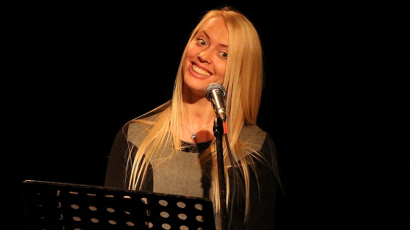 GOŁDAP. Natalia Wojciechowska wystąpiła dziś w sali widowiskowej Domu Kultury. Przy akompaniamencie Waldemara Stepuka zaśpiewała przede wszystkim piosenki Anny German, ale nie tylko. Niezbyt licznie przybyła publiczność mogła razem z nią zaśpiewać „Hej sokoły", było też kilka popularnych piosenek ukraińskich. Między nimi były przedstawiane krótkie fragmenty życiorysu Anny German. Natalia Wojciechowska urodziła się w Polsce. Wychowywała się na Ukrainie. Później w Polsce studiowała i pracowała. Teraz los ją skierował do Norwegii. Organizatorami koncertu byli: Dom Kultury i Instytut Integracji Europejskiej.