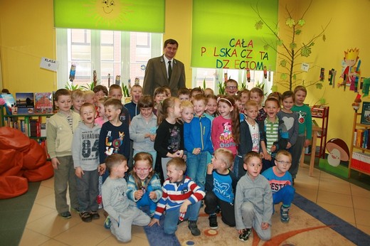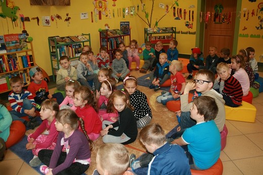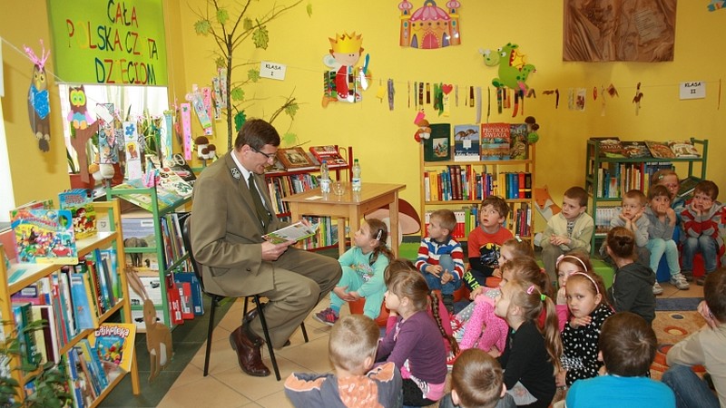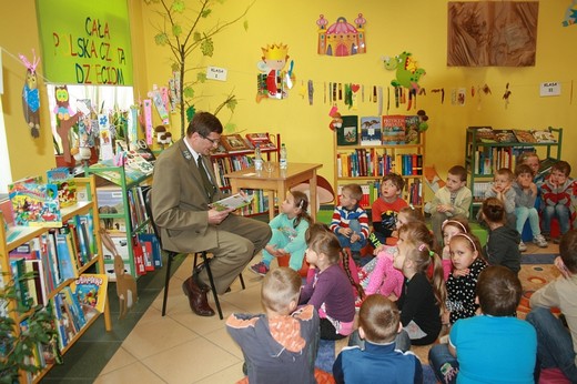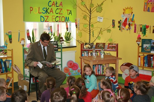 GOŁDAP. Tym razem gościem Biblioteki Publicznej był Andrzej Wyłucki – nadleśniczy w Nadleśnictwie Gołdap, który przeczytał bajkę pt. „Jaki jest pożytek z owadów?". Na spotkanie przyszła klasa 5-latków „c" wraz z wychowawczynią Ewą Kulikowską i Bożeną Kimera-Dąbkowską oraz klasa 0 „b" z wychowawczynią Pauliną Pietrzak. Dzieci z uwagą słuchały czytanej bajki. Chętnie zadawały i odpowiadały na pytania. Maluchy dowiedziały się wiele ciekawych rzeczy m.in. jakie panują zwyczaje w lesie, jak należy zachować się spacerując po leśnych dróżkach. Nadleśniczy opowiedział małym słuchaczom jak wygląda praca w lesie. Przedstawił mieszkańców lasu, opowiedział o pszczołach, mrówkach i bobrach, które są bardzo pożyteczne i potrzebne. Dzieci dowiedziały się jak wygląda dokarmianie zwierzyny i jakie zwierzęta są pod ochroną. Szkraby wykazały się niezwykłą wiedzą na temat zwierząt, ptaków i owadów żyjących w lasach oraz jakie rosną drzewa i rośliny, a także które grzyby są jadalne, a które trujące. W podziękowaniu za miłe spotkanie uczestnicy wręczyli nadleśniczemu kwiatek i podziękowanie, pan Andrzej poczęstował zaś wszystkich cukierkami.