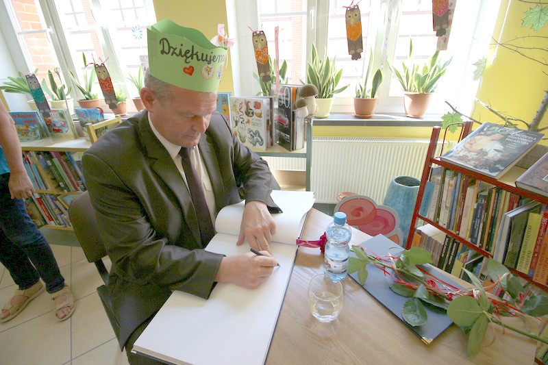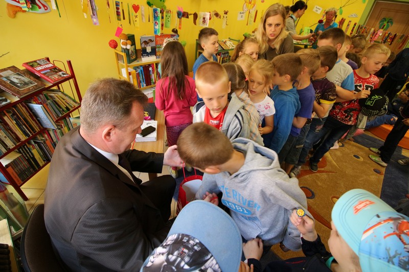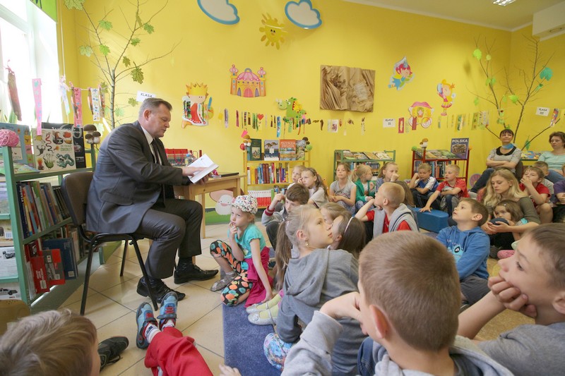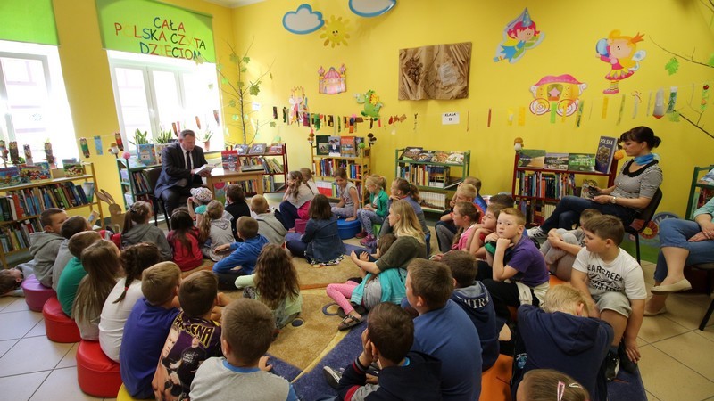 GOŁDAP. 11 czerwca starosta gołdapski Andrzej Ciołek spotkał się w czytelni dla dzieci z uczniami ze Szkoły Podstawowej nr 2 w Gołdapi. W ramach akcji „cała Polska czyta dzieciom" przeczytał jedno z opowiadań z książki pt. „Nowe przygody Mikołajka" René Goscinnego i Jean-Jacques Sempé'a. Po lekturze dzieci zadały Andrzejowi Ciołkowi kilka pytań, m.in. o jego pracę. Spotkanie zakończyło się słodką niespodzianką, jaką starosta przygotował młodym słuchaczom. Dzieci z kolei, wraz z nauczycielkami, podziękowały staroście i uhonorowały go specjalną koroną.