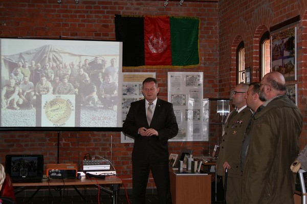 GOŁDAP. W Muzeum Ziemi Gołdapskiej dyrektor Biblioteki Publicznej w Gołdapi otworzyła w piątek wystawę pt. „Żołnierze 15 Gołdapskiego Pułku Przeciwlotniczego na misjach zagranicznych” zorganizowaną przez 15pplot, Bibliotekę Klubu Wojskowego oraz Bibliotekę Publiczną. Słowa wstępu do zebranych skierował major Grzegorz Łapiński. Następnie głos zabrał kapral Artur Żarnowski, który puścił film poświęcony poległemu na misji młodemu żołnierzowi. Drugi wzruszający film zaprezentował weteran sierżant Franciszek Jurgielewicz, który był na trzech misjach w: Kosowie, Iraku i Afganistanie, gdzie w wyniku wybuchu pocisków stracił nogę. Po wystąpieniach żołnierzy obecny na wystawie starosta gołdapski Andrzej Ciołek podziękował za prezentacje, podkreślił, jak ciężki zawód wykonują żołnierze oraz to, że należy im się szacunek. Na zakończenie wszyscy obecni mogli obejrzeć pamiątki, zdjęcia z misji, które udostępnił gołdapski pułk oraz osoby prywatne: Franciszek Jurgielewicz, Paweł Stańczak i Wojciech Wasilewski. Wystawa w muzeum będzie czynna przez miesiąc.