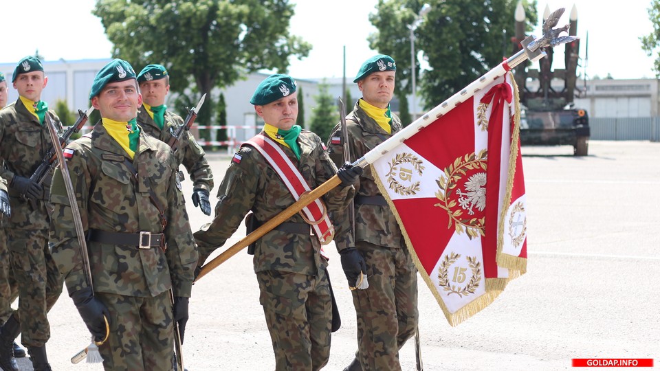 GOŁDAP. W miniony czwartek 15 Gołdapski Pułk Przeciwlotniczy obchodził swoje święto. Rozpoczęło się ono od „Dnia Otwartych Koszar”. Od godziny 9.00 można było oglądać sprzęt wojskowy i innych służb mundurowych. W samo południe odprawiona został polowa msza święta. O 13.00 był zaś apel z okazji Święta Pułku. Odczytane zostały nazwiska nagrodzonych przez dowódcę żołnierzy, wręczone zostały różne wyróżnienia i odznaczenia. Złotym Medalem „Za zasługi dla obronności kraju”, przyznanym przez Ministra Obrony Narodowej, uhonorowana została Józefa Buraczewska. Trzech jej synów służy obecnie w 15pplot, czwarty zaś odbył tu zasadniczą służbę wojskową. Apel zakończyła defilada pododdziałów.