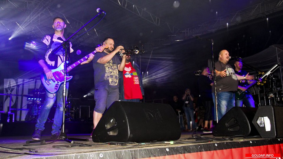 GOŁDAP. Występ zespołu Piersi zakończył pierwszy dzień rozpoczętych wczoraj tegorocznych Dni Gołdapi. Podczas występów grup Stare Drobne Małże i Wolni Ludzie pogoda wydawała się być spokojna, jednak podczas występu gwiazdy wieczoru niemile zaskoczyła gołdapian oraz turystów ulewnym deszczem. Nie zniechęcił on jednak do pozostania na koncercie. Mimo przeciwności impreza jak co roku przyciągnęła na targowicę wielu zainteresowanych.