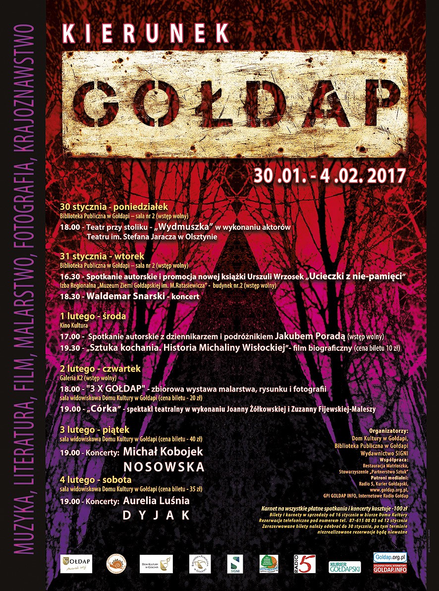 Kolejnym punktem „Kierunku Gołdap” był wczoraj koncert Waldemara Snarskiego w gołdapskim muzeum. Dziś zaplanowano spotkanie z dziennikarzem i podróżnikiem Jakubem Poradą oraz projekcję filmu „Sztuka kochania. Historia Michaliny Wisłockiej”.