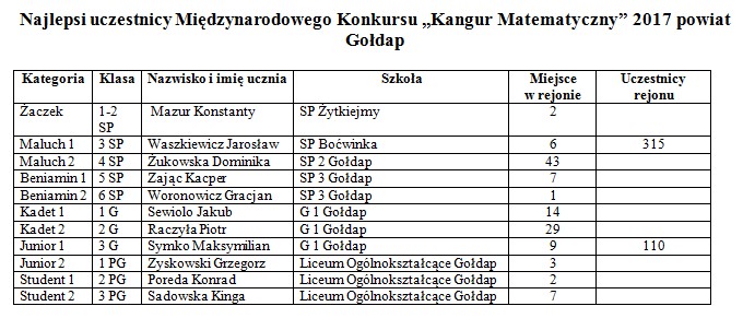 GOŁDAP. 2 czerwca w Starostwie Powiatowym w Gołdapi rozdane zostały nagrody uczniom szkół z terenu powiatu gołdapskiego, którzy zajęli najlepsze miejsca w Międzynarodowym Konkursie Kangur Matematyczny 2017.