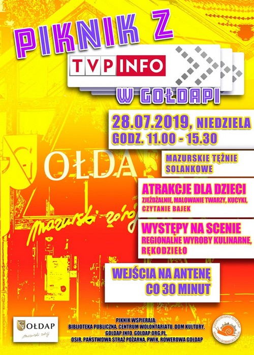 GOŁDAP. Przy tężni w Gołdapi odbywa się z dziś piknik z TVP INFO. Od rana w telewizji są też wejścia antenowe z naszego miasta. Impreza potrwa do około godziny 15:00. Zapraszamy!