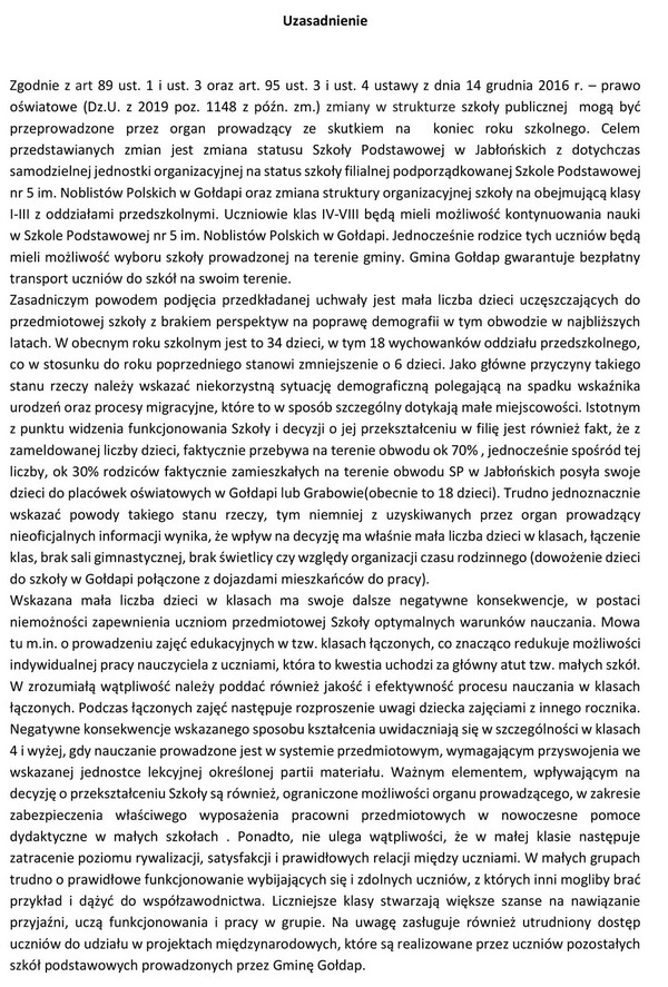 GOŁDAP/JABŁOŃSKIE. Gmina Gołdap planuje z końcem sierpnia bieżącego roku formalnie zlikwidować Szkołę Podstawową w Jabłońskich. W jej miejsce od września ma powstać filia Szkoły Podstawowej nr 5 w Gołdapi. Nie będzie w niej jednak wszystkich roczników. Planowana struktura organizacyjna zakłada, że w Jabłońskich będą klasy 1-3 oraz oddział przedszkolny.