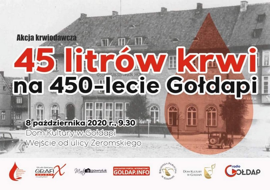 GOŁDAP. Gołdapskie Stowarzyszenie Honorowych Dawców Krwi zaprasza do udziału w akcji krwiodawczej. Odbędzie się ona 8 października w Domu Kultury w Gołdapi (wejście od ul. Żeromskiego). Początek o godzinie 9.30.