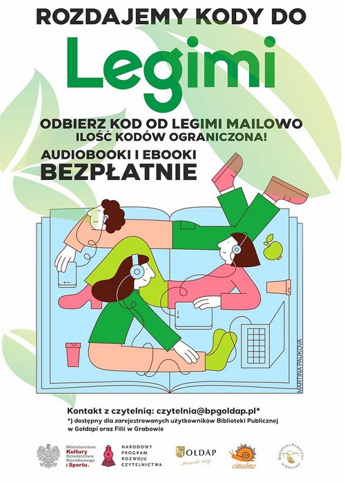 GOŁDAP. Biblioteka Publiczna w Gołdapi zaprasza miłośników e-booków do skorzystania z bezpłatnych kodów do platformy Legimi.