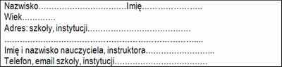 - praca powinna być opatrzona metryczką (wg wzoru), opisana czytelnie pismem drukowanym