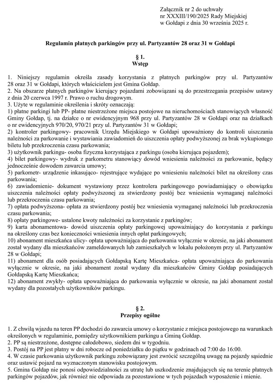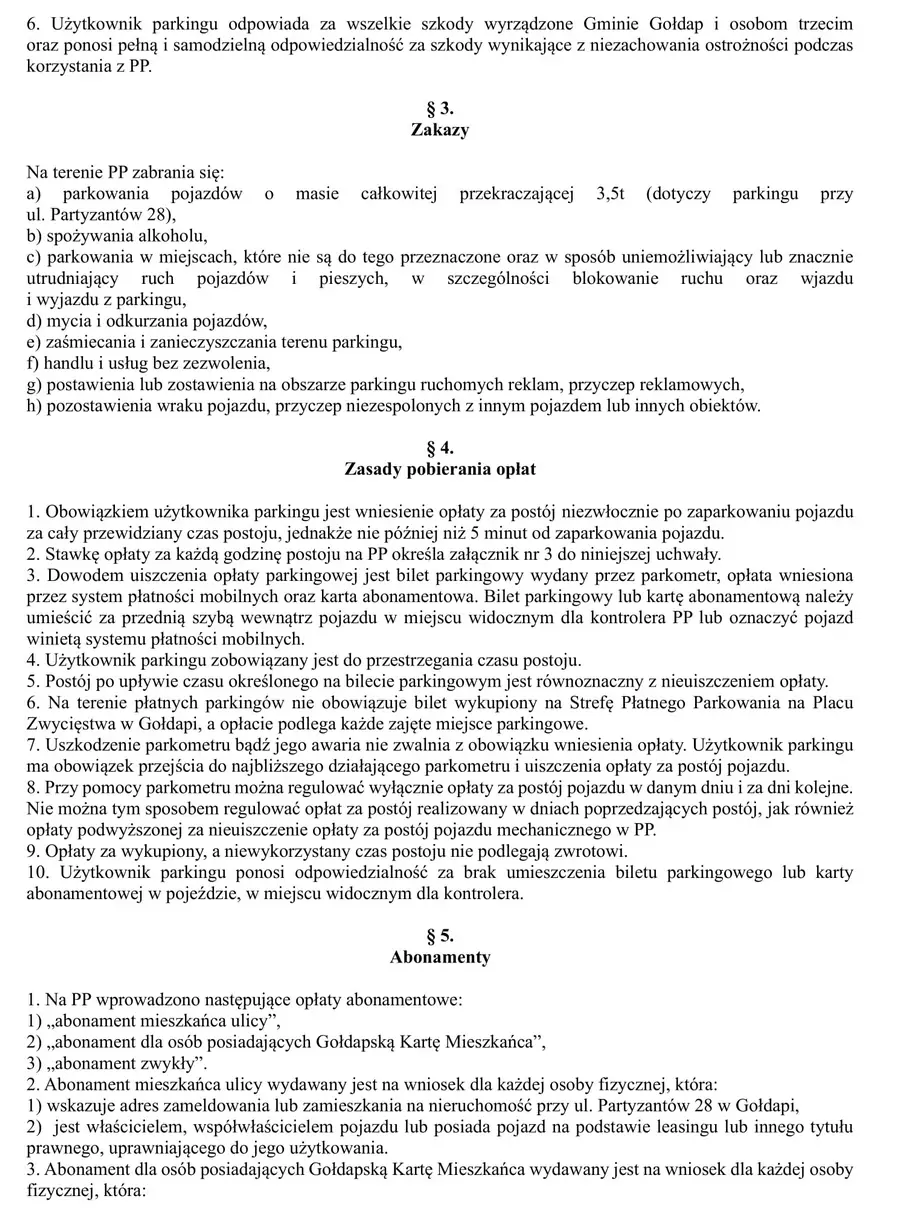 "Konieczność wprowadzenia ww. płatnych parkingów spowodowana jest próbą zapewnienia większej dostępności miejsc parkingowych dla użytkowników kompleksu rekreacyjnego Hala-Basen, Szkoły Podstawowej nr 5 im. Noblistów polskich w Gołdapi oraz korzystających z Biblioteki Publicznej."