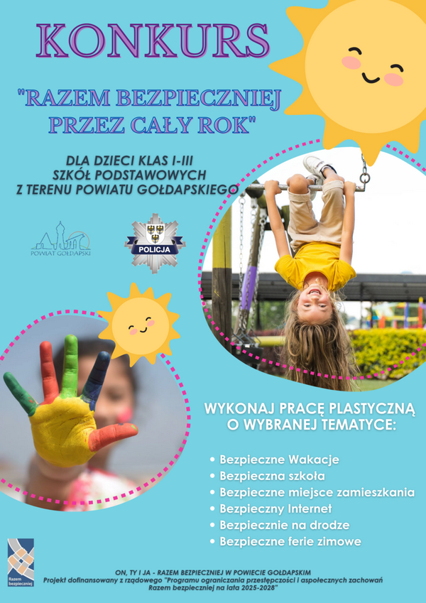 Starostwo Powiatowe w Gołdapi oraz Komenda Powiatowa Policji w Gołdapi zapraszają dzieci do udziału w konkursie plastycznym „Razem bezpieczniej przez cały rok”.