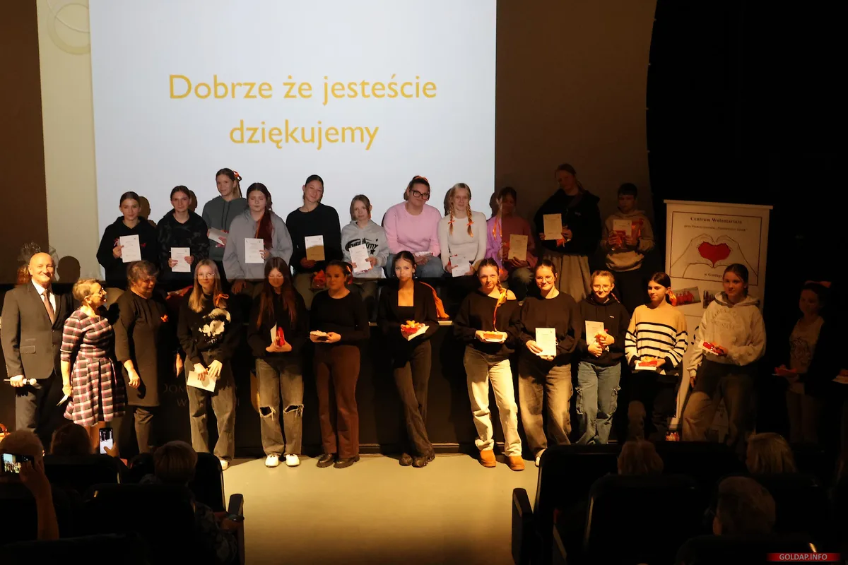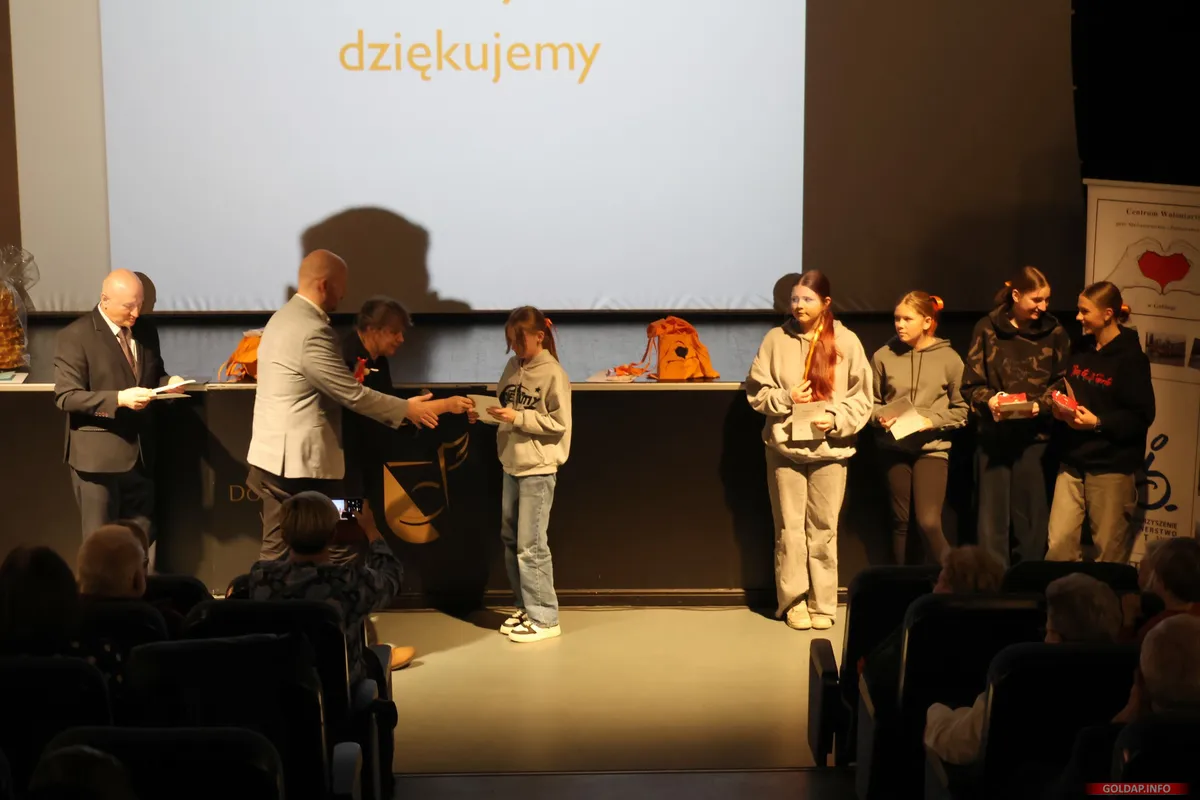 Gala podsumowująca odbyła się dziś po południu w sali widowiskowej Domu Kultury w Gołdapi. Uczestniczyli w niej wolontariusze ze Szkolnego Koła Wolontariatu przy Szkole Podstawowej nr 5 w Gołdapi, Klubu Wolontariusza „Pomarańczki” i Wolontariusze 18+. Wśród obecnych na wydarzeniu byli też m.in. przedstawiciele lokalnych samorządów: starosta Krzysztof Kazaniecki wraz z wicestarostą Marzanną Wardziejewską, burmistrz Gołdapi Konrad Kazaniecki i przewodnicząca rady miejskiej w Gołdapi Wioletta Anuszkiewicz. Galę jak zawsze prowadzili „rodzice” lokalnego wolontariatu: Dorota Łasica i Mirosław Bobrowski.