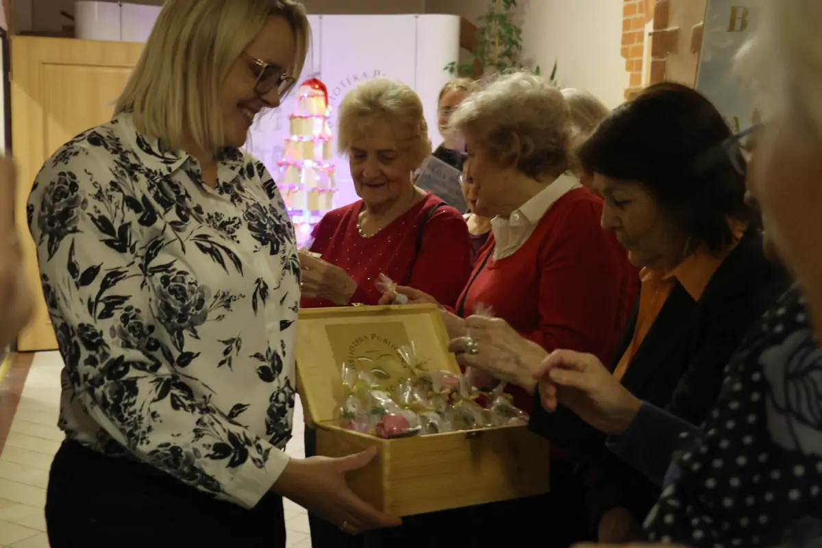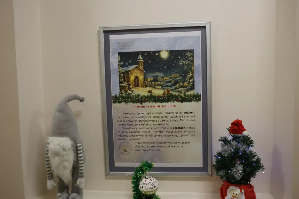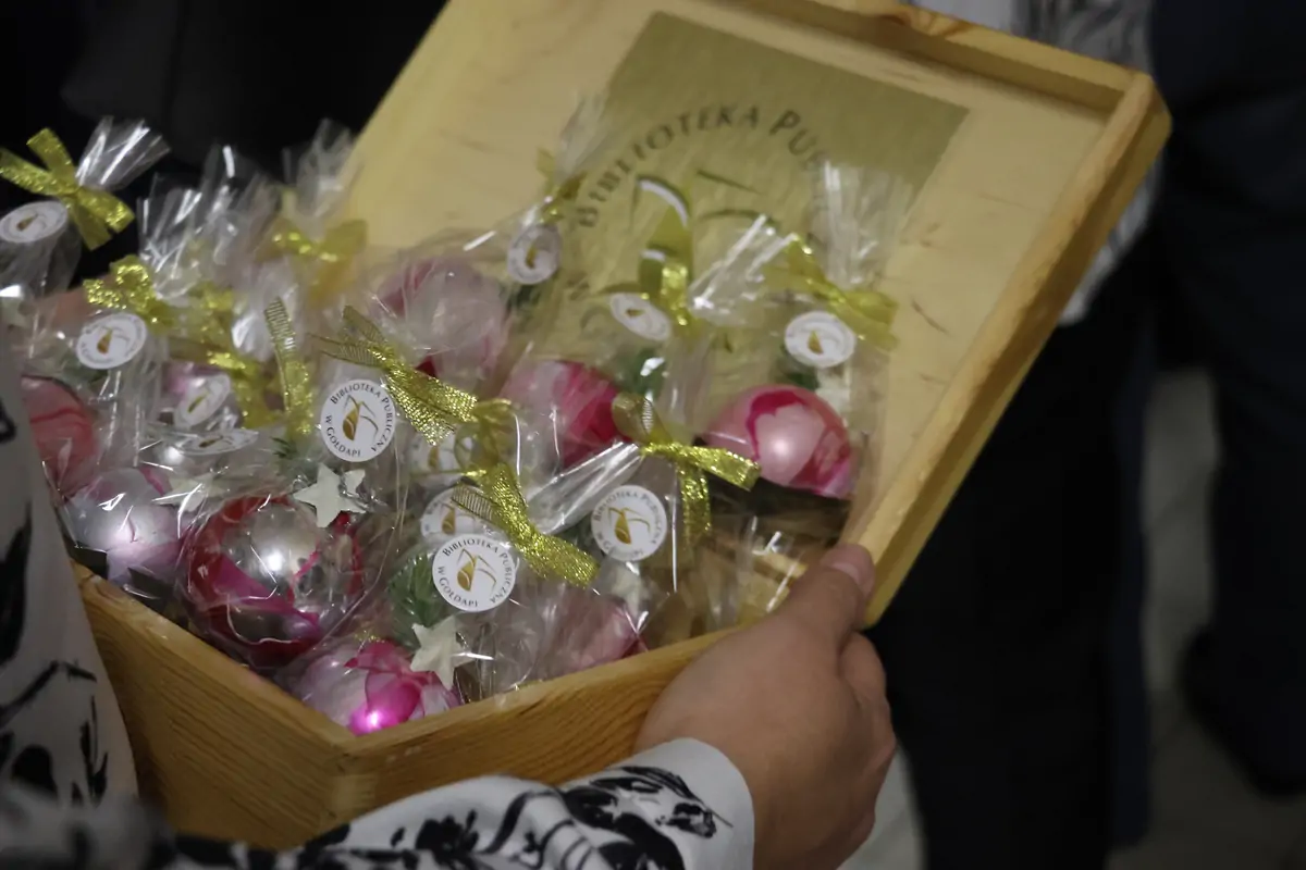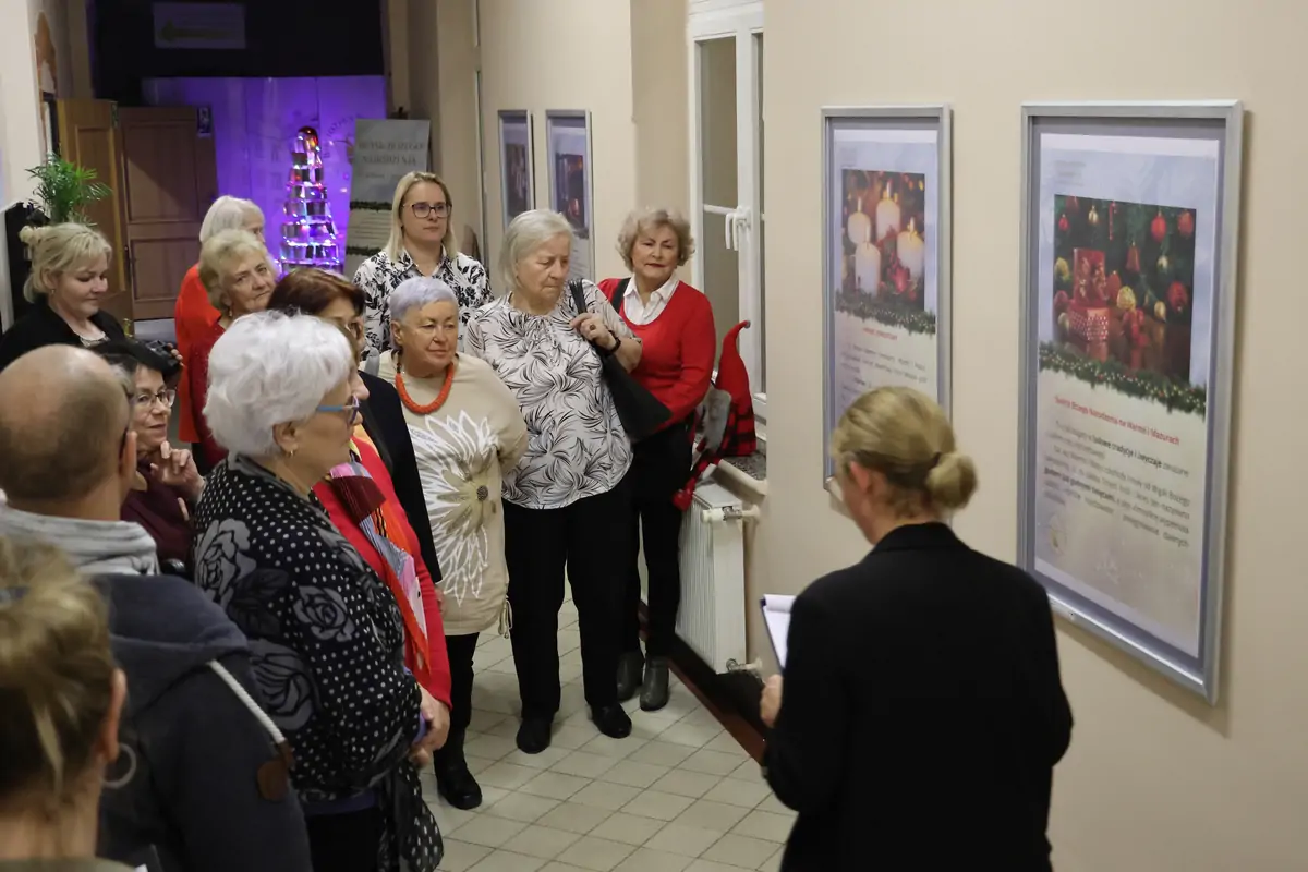 Otwarcie wystawy „Blask Bożego Narodzenia na Warmii i Mazurach” zgromadził gości, którzy pragnęli choć na chwilę zatrzymać się w przedświątecznym biegu i zanurzyć w historii naszego regionu. W przestrzeni biblioteki rozbrzmiewały rozmowy o domowych tradycjach, zimowych wspomnieniach i rodzinnych obrzędach przekazywanych z pokolenia na pokolenie. Wernisaż stał się okazją nie tylko do refleksji, ale także do wspólnego przeżywania nadchodzących świąt. Dodatkowym akcentem świątecznym były bombki ręcznie wykonane przez bibliotekarzy, które wręczone zostały uczestnikom wernisażu jako symbol ciepła, pamięci i lokalnej tradycji.