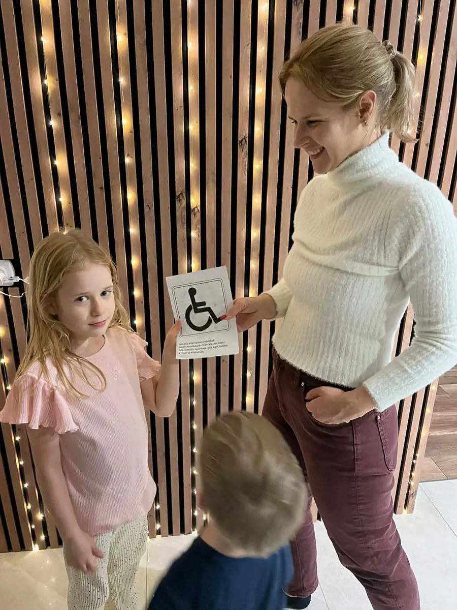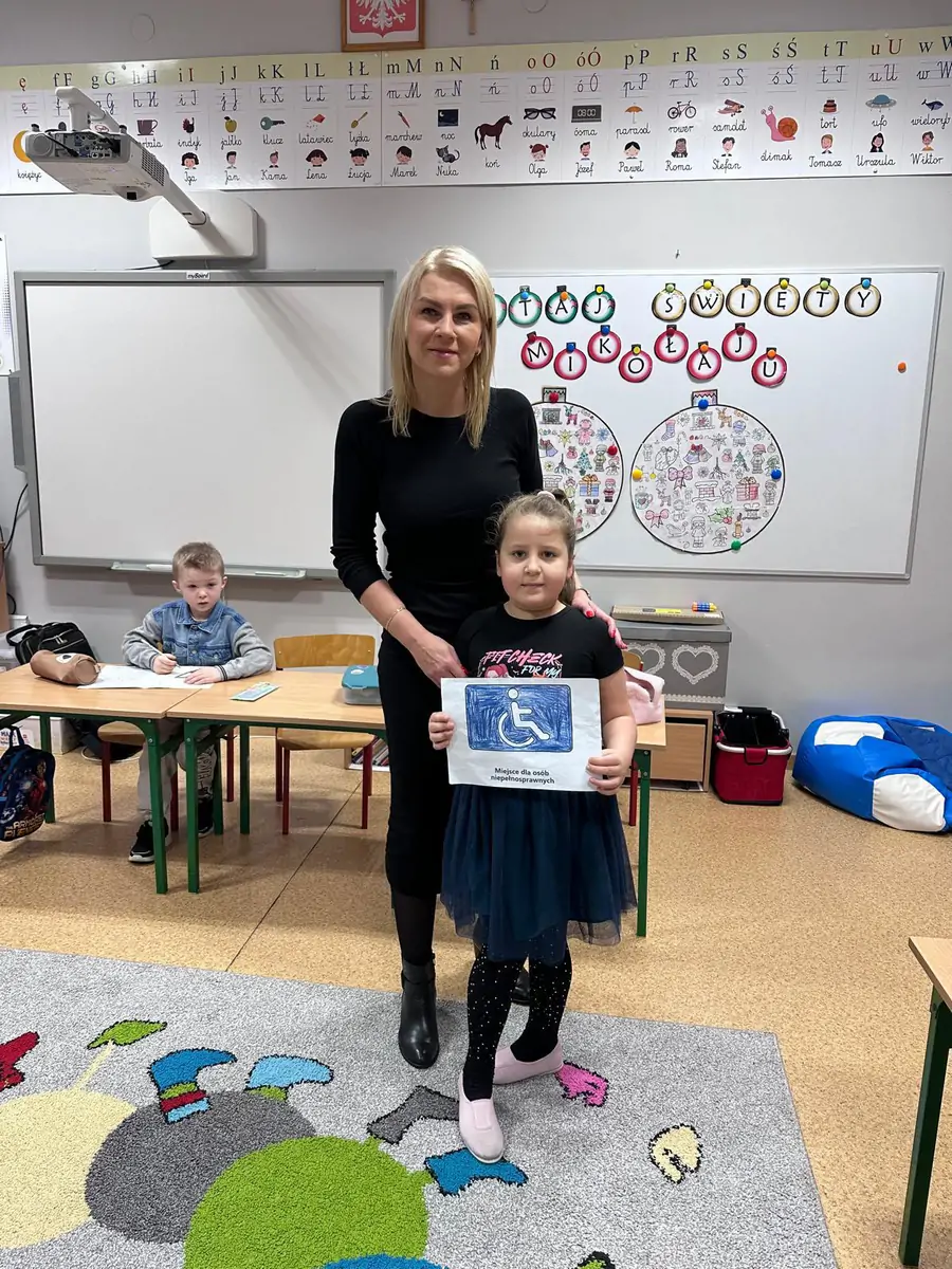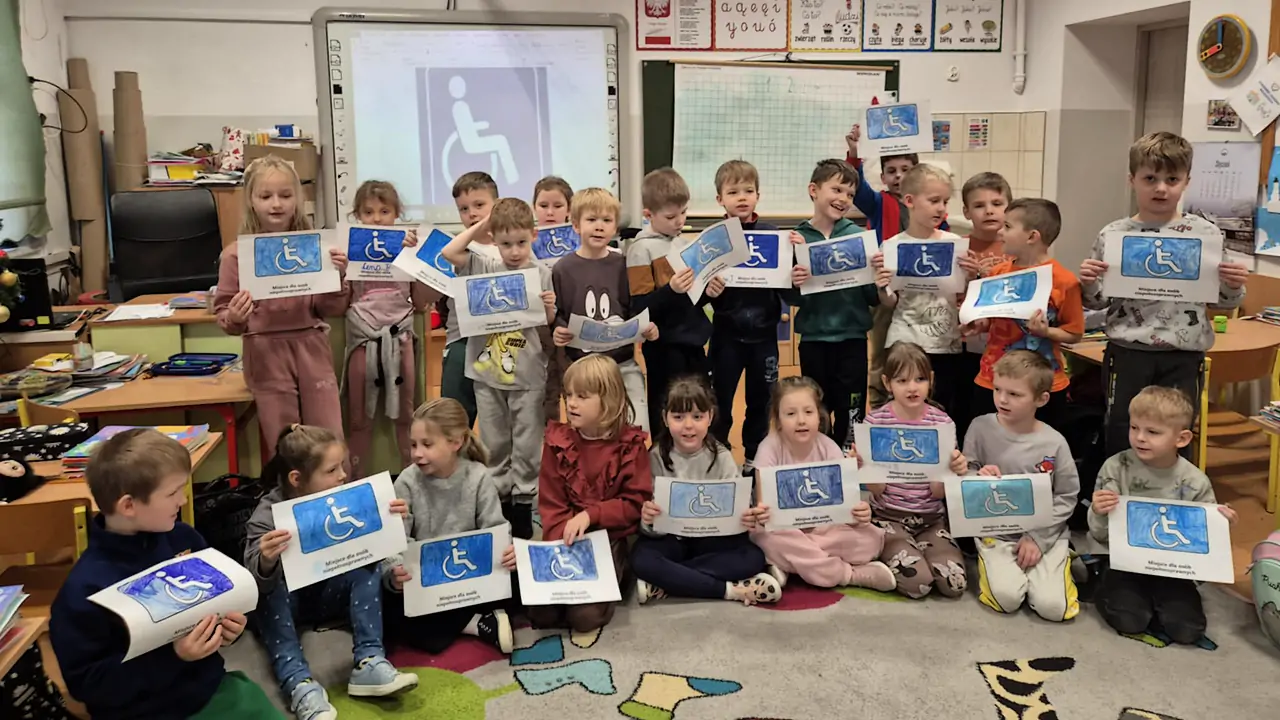 Policjanci z Komendy Powiatowej Policji w Gołdapi wraz z uczniami gołdapskich szkół przypominają, że pomalowana na niebieski kolor „koperta” dla osób niepełnosprawnych ma poprawić widoczność miejsc przeznaczonych dla osób ze szczególnymi potrzebami.