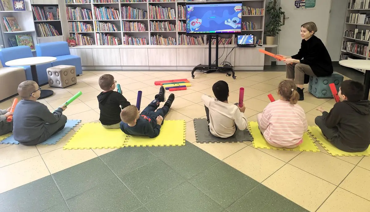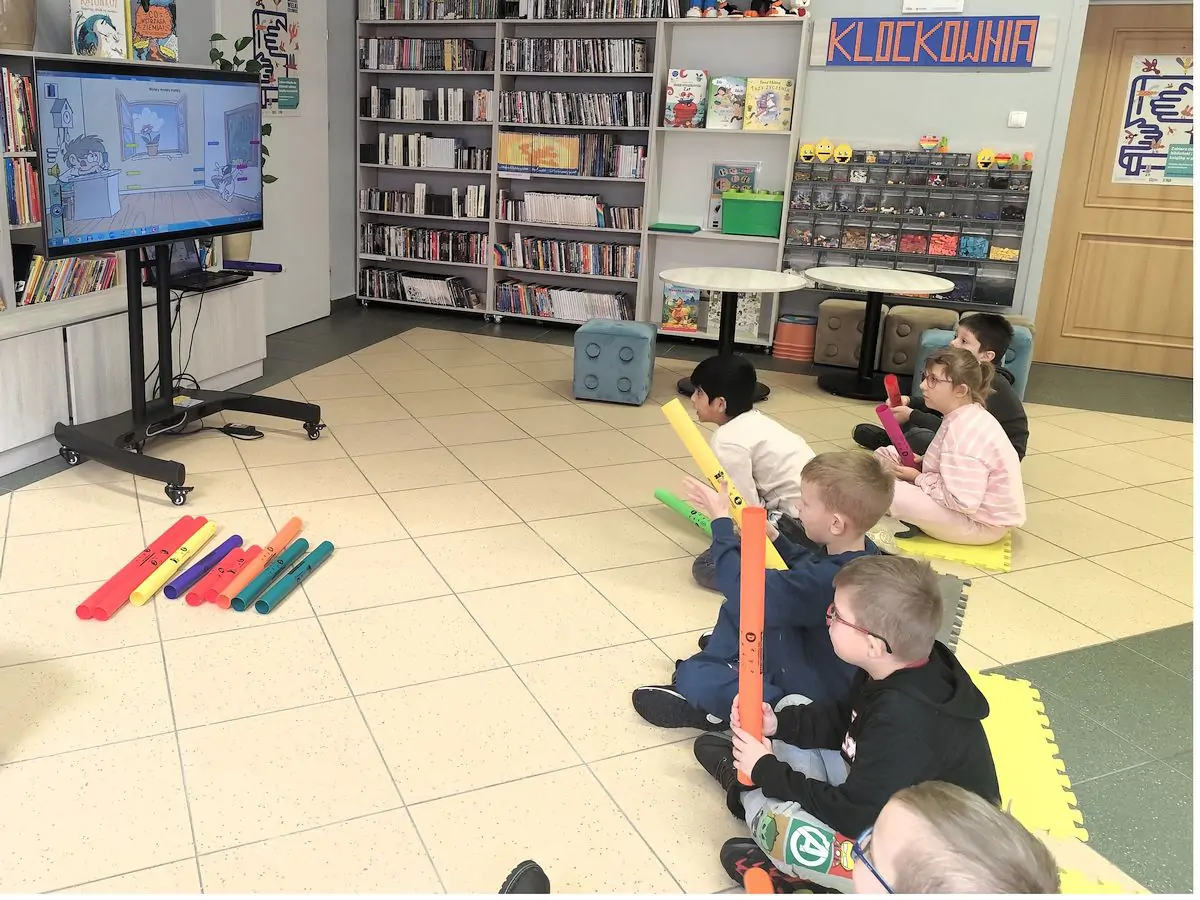 Druga część wydarzenia miała charakter muzyczny. Dzieci aktywnie uczestniczyły w zajęciach, grając na bum bum rurkach. Zabawa ta nie tylko dostarczyła wielu emocji, ale także pozwoliła połączyć literaturę z twórczą ekspresją muzyczną, co spotkało się z entuzjastycznym przyjęciem przez uczestników.