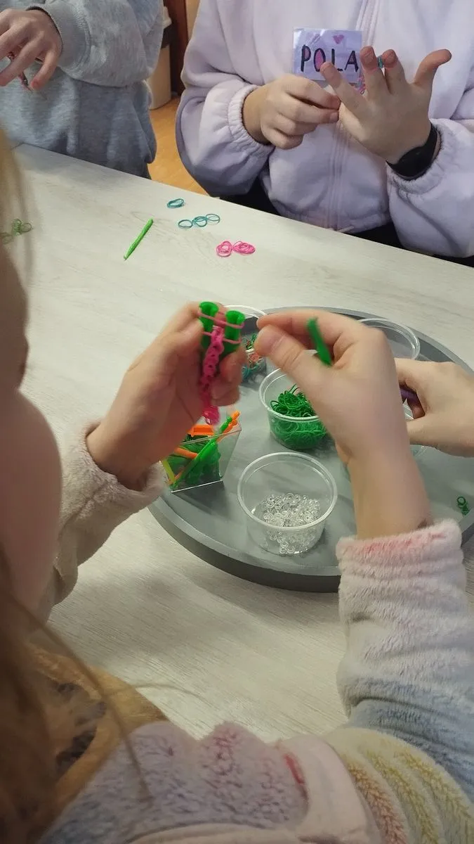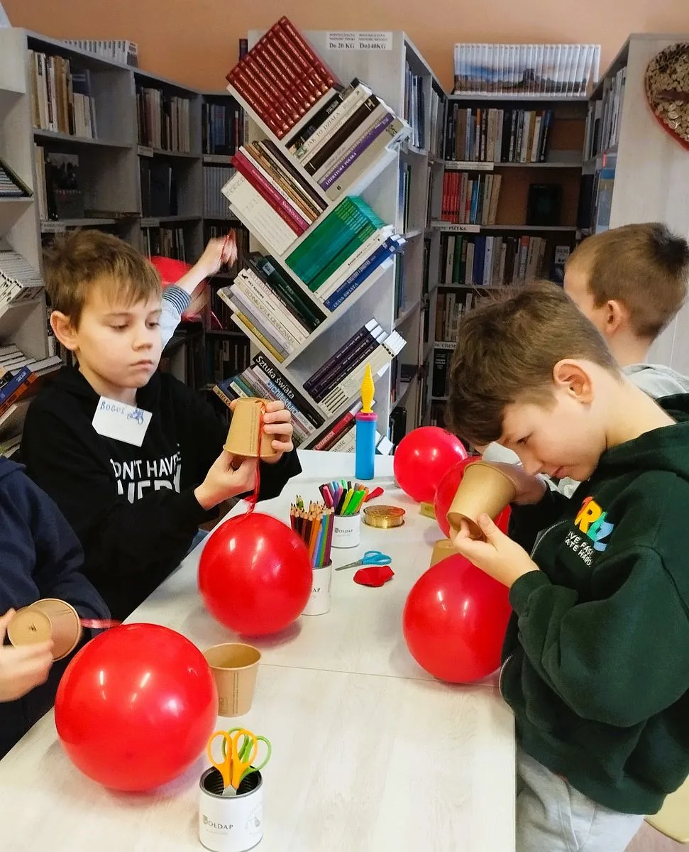 W tym samym czasie podczas „ferii w bibliotece” dzieci brały udział w twórczych aktywnościach. Wykonywały kolorowe bransoletki z gumek, przygotowywały zakładki do książek ozdabiane błyszczącymi brylancikami oraz programowały i bawiły się robotami Photon. Nie zabrakło także działań przyrodniczo-plastycznych, powstały witraże dla ptaków.