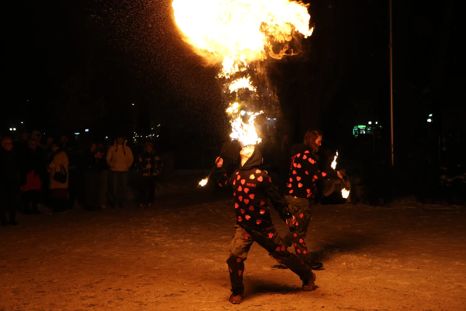 Trzecia i ostatnia część to „światełko do nieba”. Od wielu lat punkt ten jest realizowany w postaci występu teatru ognia Flash Zone z Domu Kultury w Gołdapi. Nie inaczej było i wczoraj.