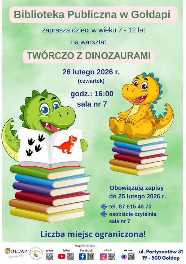 Wkrótce biblioteka zamieni się w prawdziwe centrum prehistorycznych odkryć. Z okazji „Dnia dinozaura” zapraszamy dzieci w wieku 7-12 lat na warsztat, który odbędzie się 26 lutego.