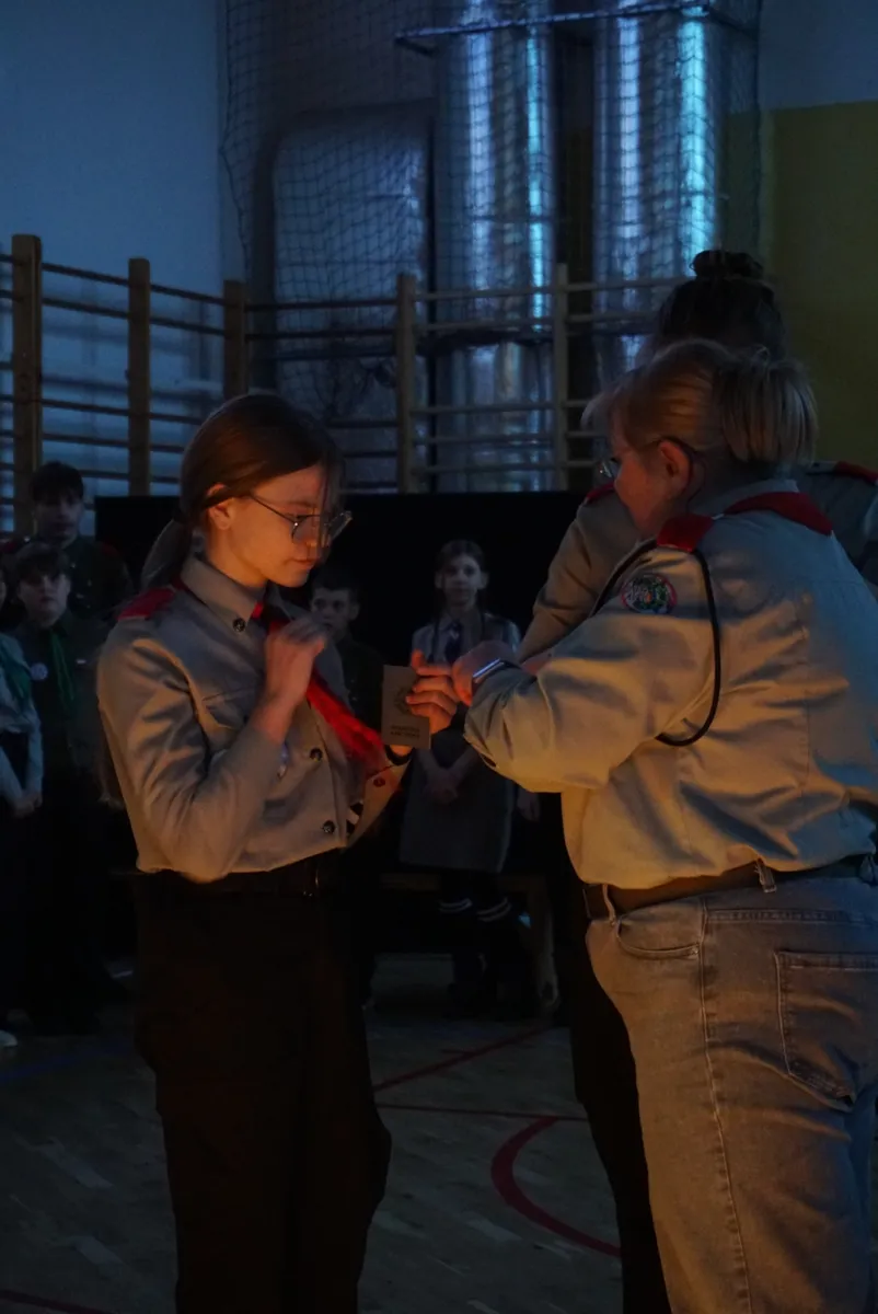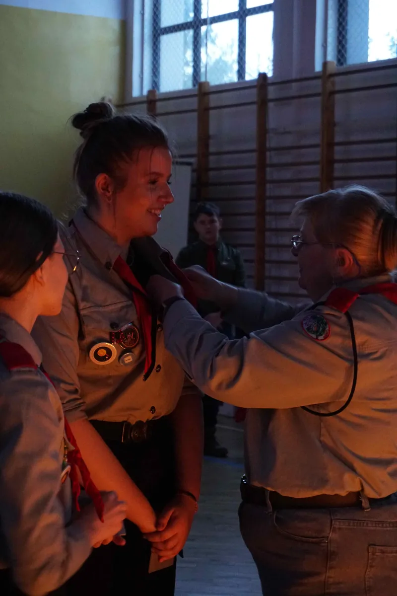 Podczas świeczkowiska Natalia i Sandra złożyły przyrzeczenie harcerskie, zwieńczając tym samym kilkumiesięczne zaangażowanie w pracę drużyny oraz poznawanie ideałów harcerstwa.