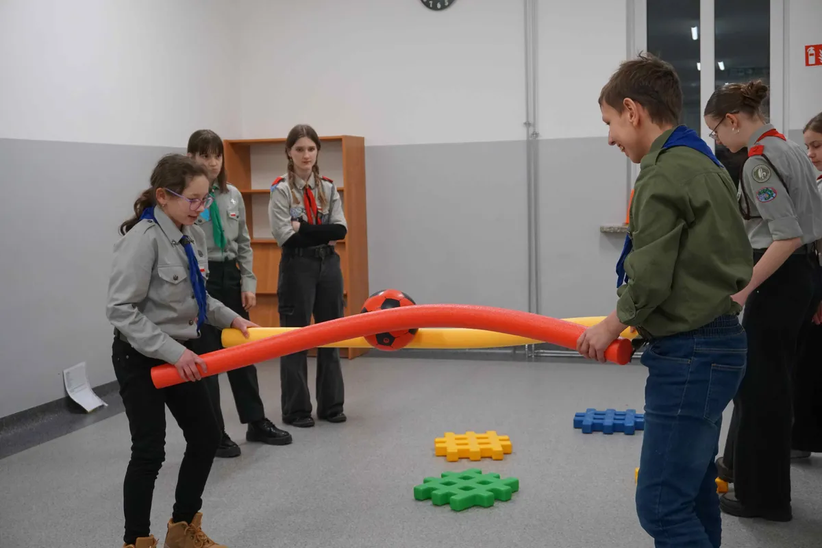 Kolejnym punktem uroczystości była gra tematyczna integrująca harcerzy z różnych środowisk oraz sprawdzająca ich wiedzę o twórcy skautingu i umiejętności z zakresu pierwszej pomocy, wiązania węzłów. Patrole harcerskie i zuchowe przemierzały szkolne korytarze, realizując zadania na punktach kontrolnych. Na zakończenie z otrzymanych elementów układały pamiątkową kartę do kroniki z wizerunkiem „Bi-Pi”. W stołówce czekał na uczestników słodki poczęstunek.