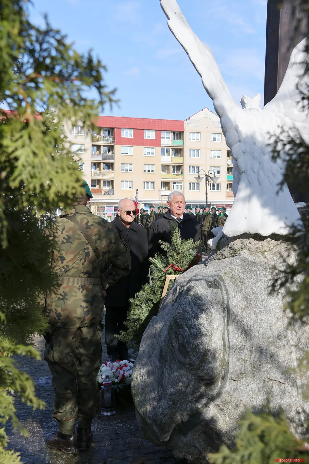 W południe, w centrum Gołdapi przy Pomniku Niepodległości, przy dźwiękach hymnu państwowego na maszt wciągnięto polską flagę. Następnie odbył się apel pamięci oraz salwa honorowa, oddana przez żołnierzy 15 Gołdapskiego Pułku Przeciwlotniczego. Wydarzenie zakończyło się złożeniem kwiatów i zapaleniem zniczy przez przedstawicieli lokalnych władz samorządowych, służb mundurowych, instytucji oraz organizacji społecznych.