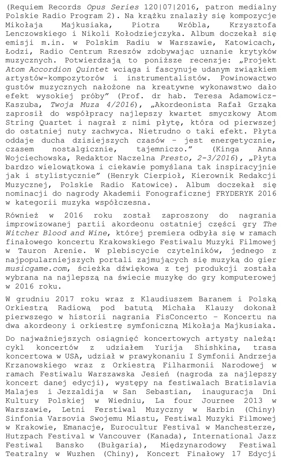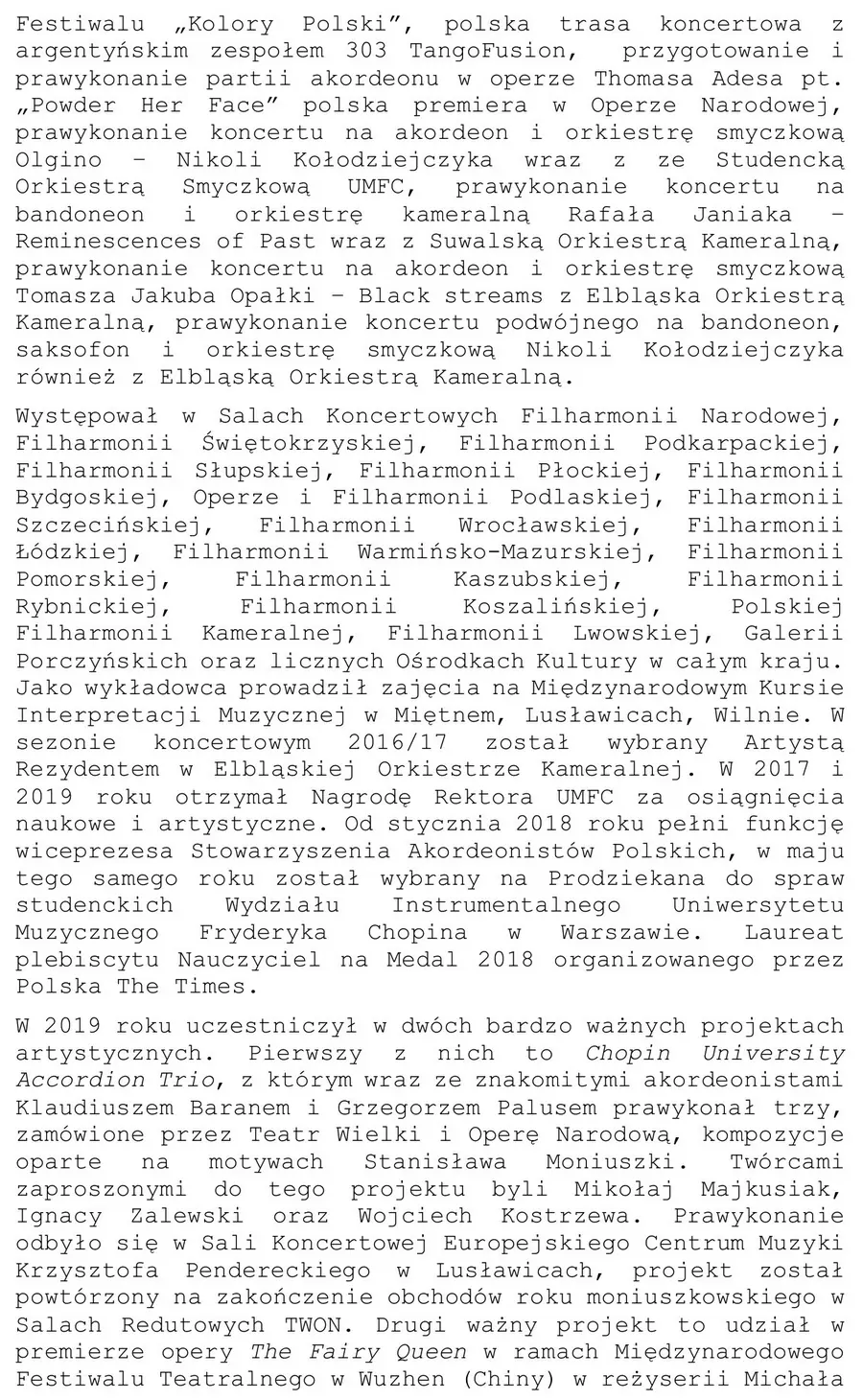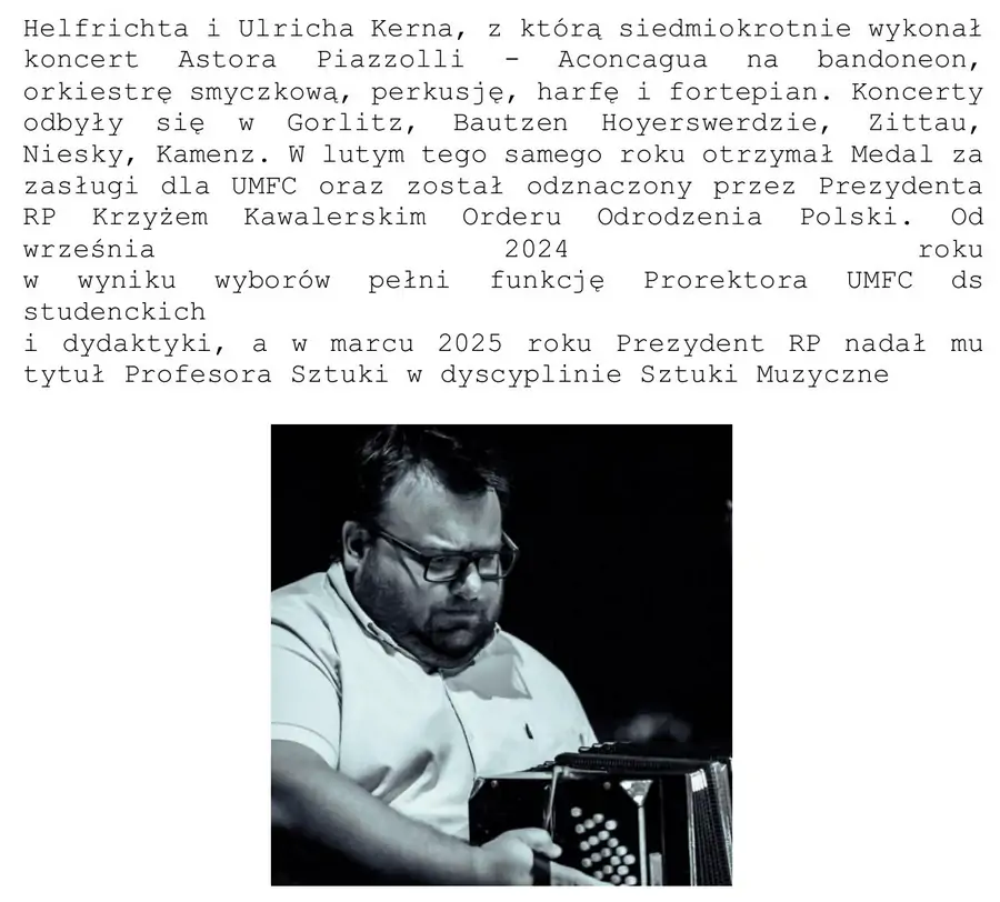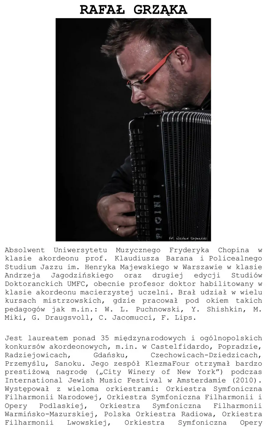 Przed publicznością wystąpi  wirtuoz akordeonu prof. dr hab. Rafał Grząka z Uniwersytetu Muzycznego Fryderyka Chopina w Warszawie. Początek wydarzenia o godzinie 16:00. Wstęp na koncert jest otwarty dla wszystkich i bezpłatny.