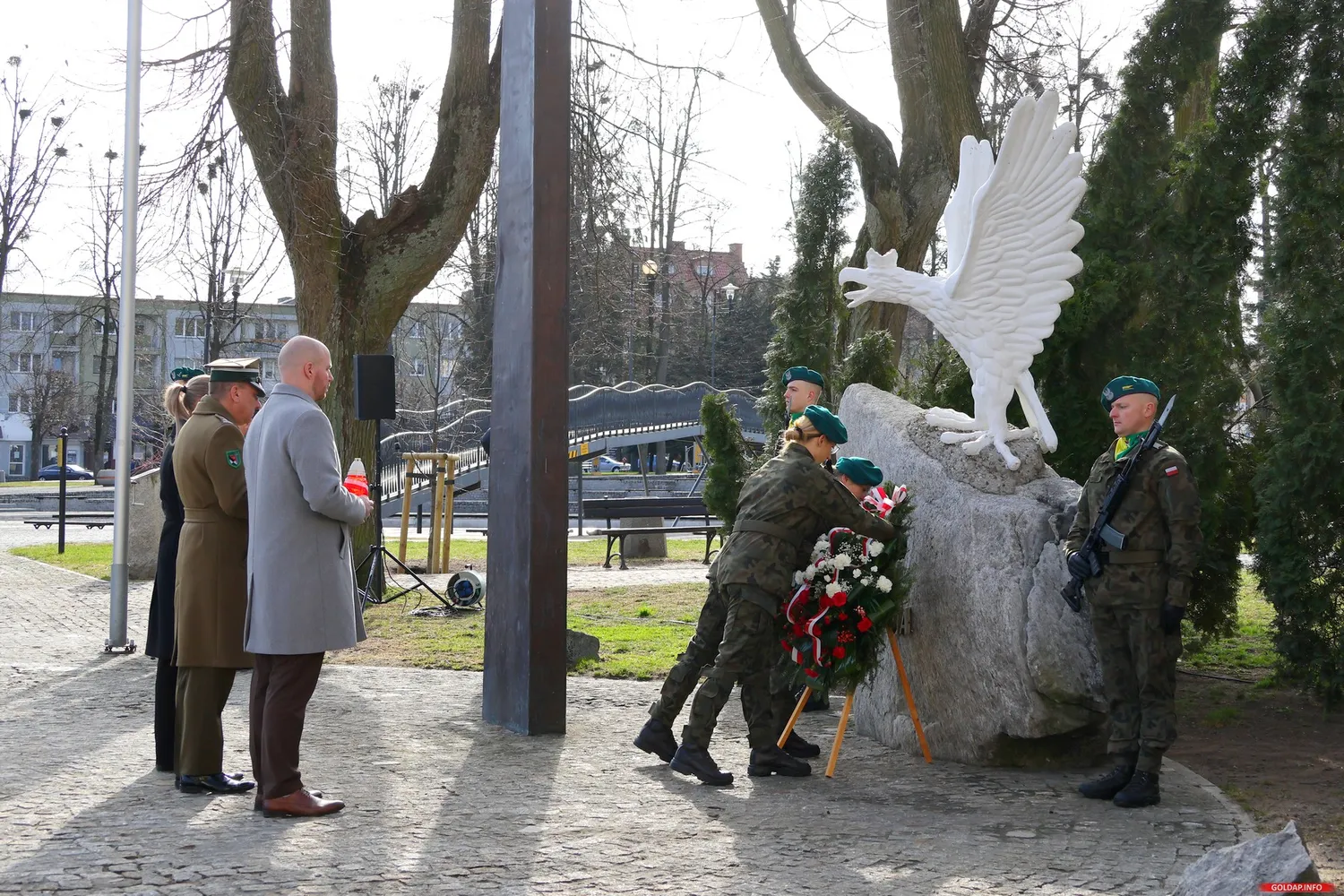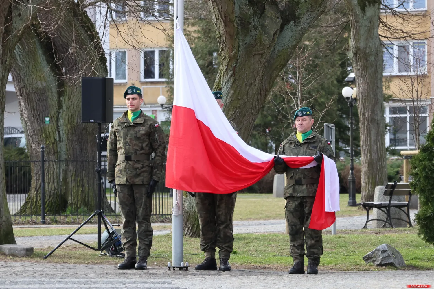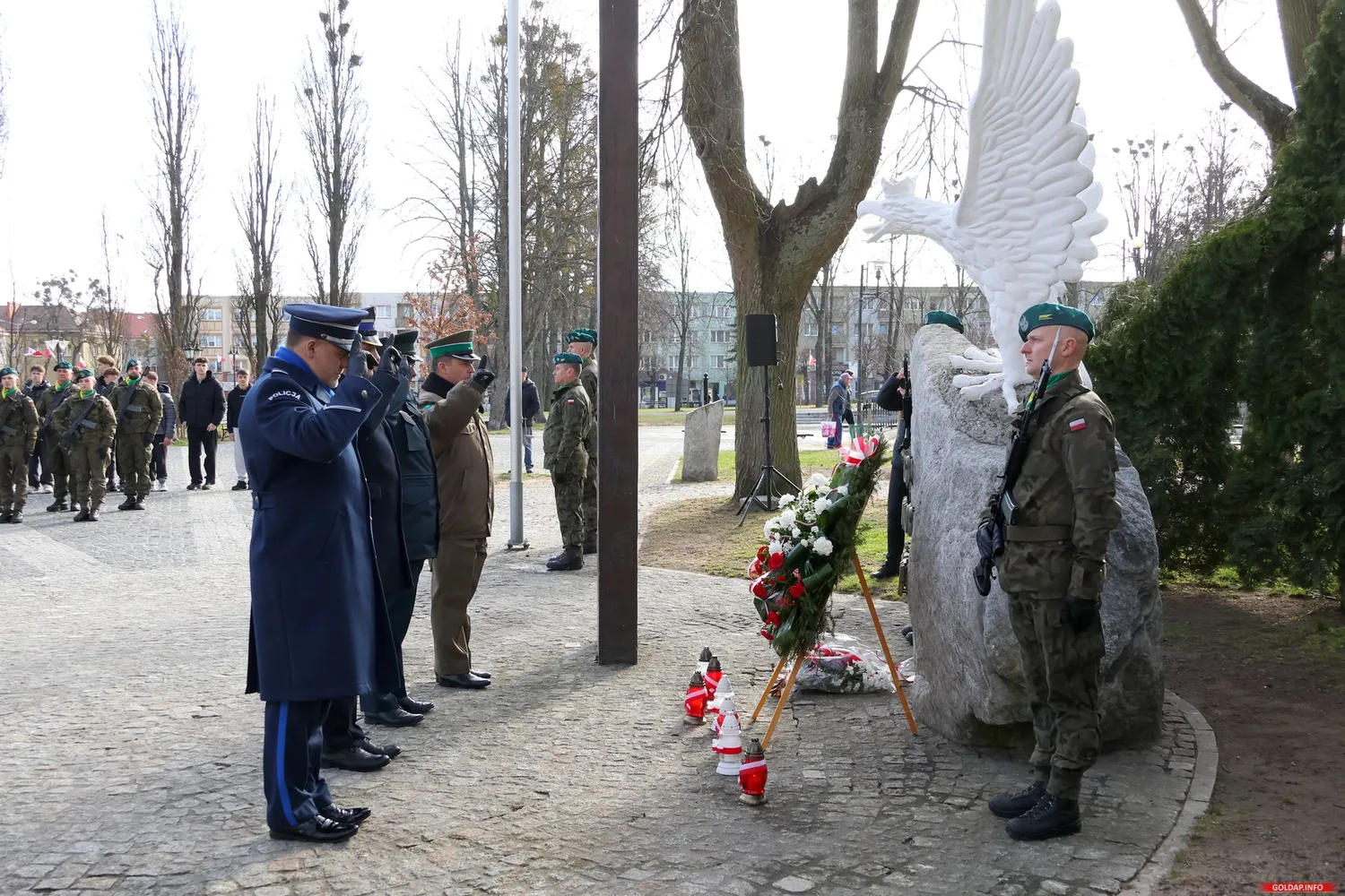 Uroczystość rozpoczęła się od Mazurka Dąbrowskiego, podczas którego na maszt przy Pomniku Niepodległości wciągnięto biało-czerwoną flagę. Następnie był apel pamięci, w trakcie którego wyczytano nazwiska osób, które zginęły w służbie ojczyzny. Hołd zmarłym oddali żołnierze 15 Gołdapskiego Pułku Przeciwlotniczego, oddając potrójną salwę honorową. Na zakończenie delegacje złożyły kwiaty oraz zapaliły znicze pod pomnikiem.