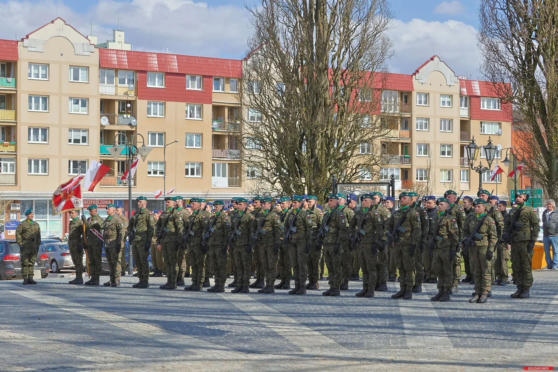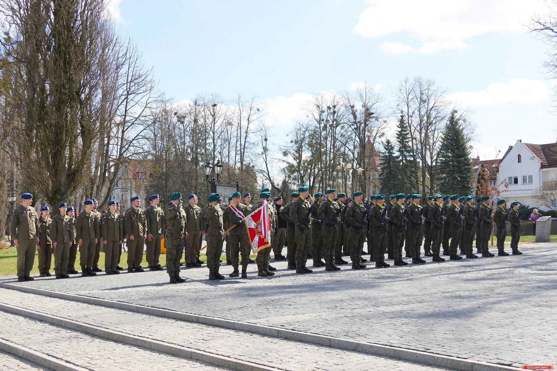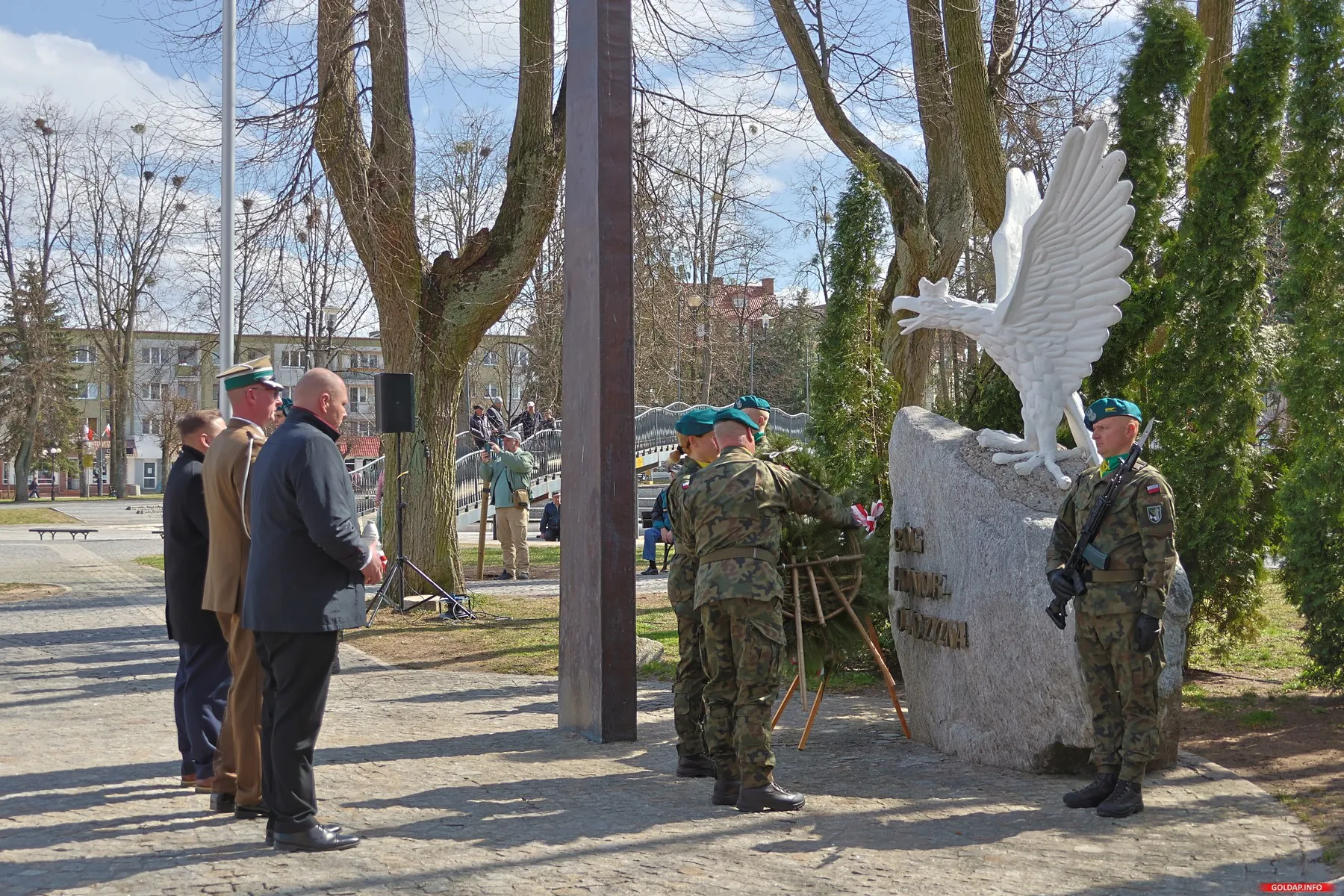Warto przy tej okazji przypomnieć, że na skwerze przy Centrum Dydaktyczno-Szkoleniowym od 2010 roku rosną cztery dęby, posadzone w ramach akcji „Katyń... ocalić od zapomnienia”. Każde z tych drzew oraz towarzysząca im tablica pamiątkowa przypominają o losach konkretnych mężczyzn, których życie brutalnie przerwane zostało przez sowietów. W Gołdapi upamiętnieni zostali: