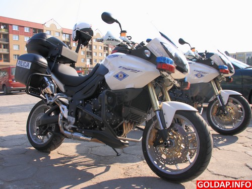 Polska policja, korzystając z dofinansowania z Norweskiego Mechanizmu Finansowego, zakupiła 51 nowoczesnych motocykli Triumph Tiger 1050. Do warmińsko-mazurskich funkcjonariuszy trafiło 13 maszyn. Wczoraj 2 z nich zostały przywiezione do Gołdapi i trafiły do ruchu drogowego. Dziś mieszkańcy Gołdapi mogli już je zobaczyć w działaniu.