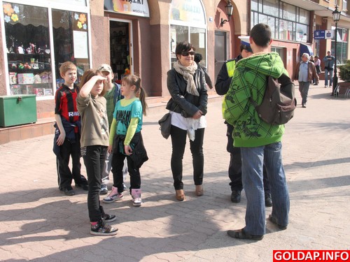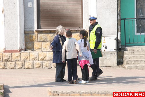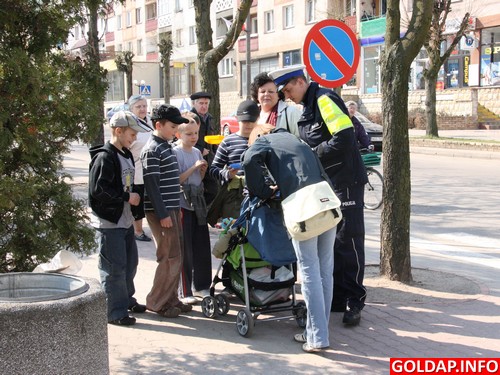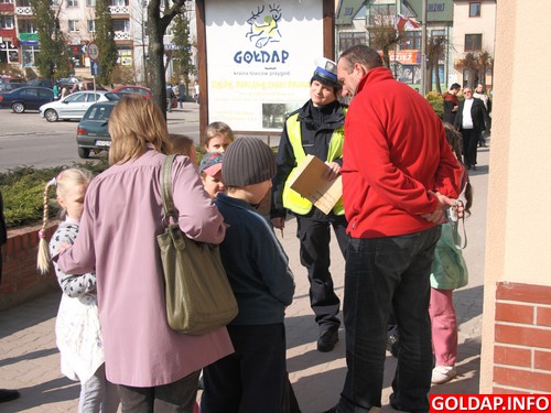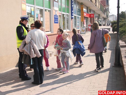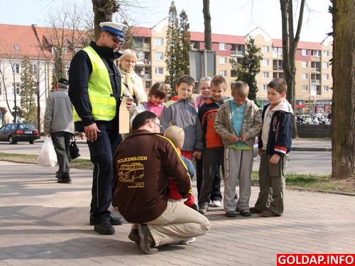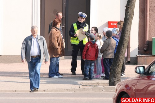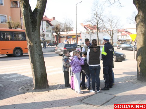 Zasady poprawnego przechodzenia przez jezdnię przypominali wczoraj mieszkańcom Gołdapi policjanci z ruchu drogowego oraz dzieci z klas 2a i 3c ze Szkoły Podstawowej nr 3. Wspólnie obserwowali przejścia wokół Placu Zwycięstwa, wyłapując niesfornych przechodniów. O ile być może sami policjanci przymknęliby oko na niektóre zachowania, to dzieci nie były już tak wyrozumiałe. Przez dwie godziny z powodu niewłaściwego przechodzenia przez jezdnię zatrzymanych zostało 75 osób. Dzieci każdej z nich wyjaśniły, jaki błąd popełniły i jak powinny prawidłowo się zachować. Choć na co dzień za takie wykroczenia policjanci karzą mandatami, tym razem byli bardziej wyrozumiali. Jeśli ktoś chciał otrzymać pouczenie, musiał zjeść daną przez dzieci cytrynę. Oczywiście z uśmiechem! Z tego rodzaju kary zdecydowali się skorzystać wszyscy zatrzymani, choć niektórzy długo się nad tym zastanawiali. Warto podkreślić, że dzieci nagradzały też osoby, które poprawnie przechodziły przez jezdnię. Otrzymywały one papierowe słoneczka.