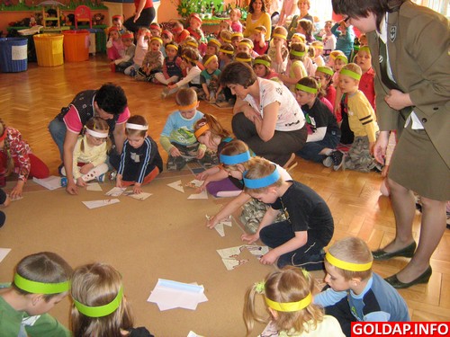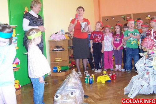 Dzieci brały aktywny udział w wielu konkurencjach, takich jak zagadki słowne i słuchowe, układanie puzzli z obrazkami chronionych zwierząt, segregowanie śmieci. Było również zadanie dla wychowawczyń grup pt. „Ekologiczna moda". Polegało na zaprojektowaniu i ubraniu jednego dziecka z grupy w gazetowy strój. Konkurencje zamykał pokaz przygotowanych wcześniej prac przestrzennych, wykonanych z surowców wtórnych. Nad wszystkim czuwała komisja w składzie: Marzanna Konieczny z Nadleśnictwa Gołdap oraz Marta Skiba, mama dwójki dzieci z przedszkola. Wszystkie grupy wykazały się pomysłowością oraz dużą wiedzą dotyczącą ekologii.