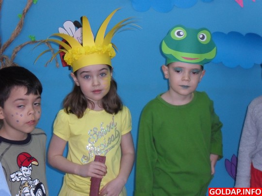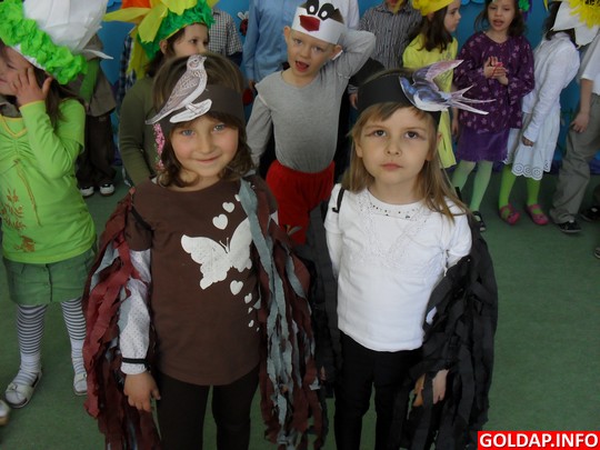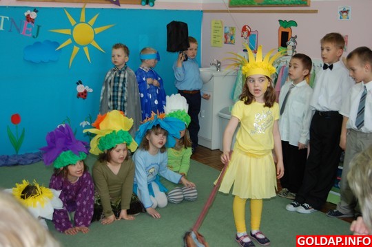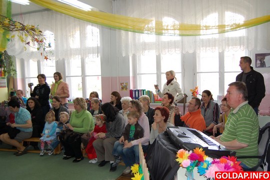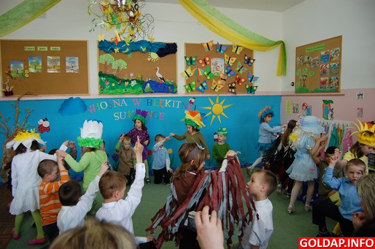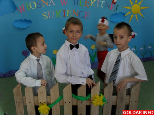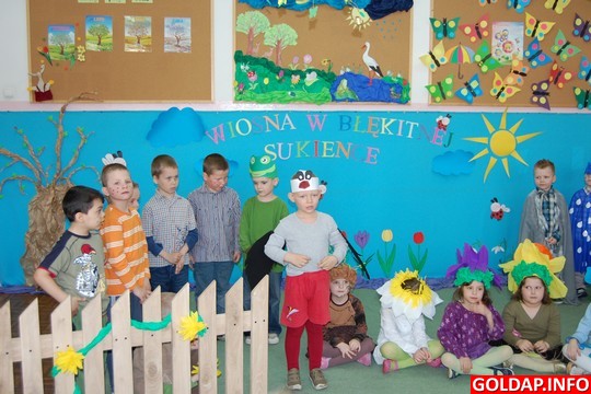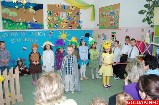 W przedstawieniu nie zabrakło także słońca, jaskółek, bociana, wiosennych kwiatów, bo z tymi darami przyszła Pani Wiosna. Podczas przedstawienia dzieci wraz z rodzicami wysłuchały wiosennych piosenek przy akompaniamencie M. Danielczyka. Wszystkim gościom bardzo podobał się występ maluchów, czego dowodziły gromkie brawa.