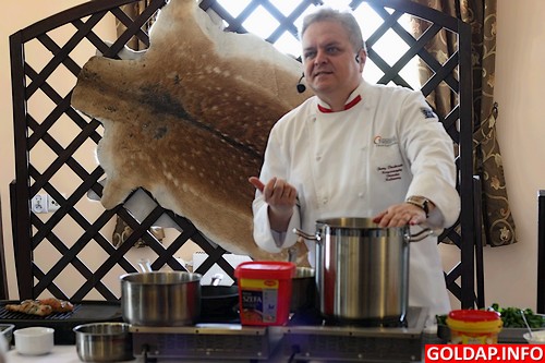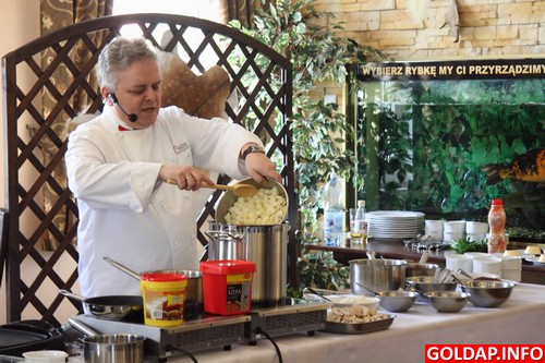 Pokaz rozpoczął Jerzy Pasikowski, korporacyjny doradca kulinarny Nestle Professional. Przygotowuje on obecnie zupę.