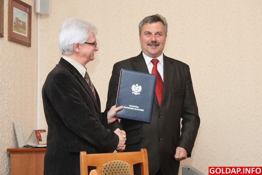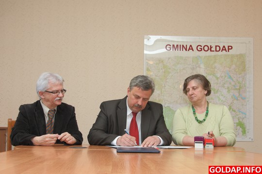 Wojewoda warmińsko-mazurski Marian Podziewski oraz zastępca burmistrza Gołdapi Jacek Morzy i skarbnik gminy Krystyna Trzasko podpisali dziś w Urzędzie Miejskim umowę, na mocy której Gołdap otrzyma dotację celową na przebudowę drogi między Kolniszkami a Górnem.