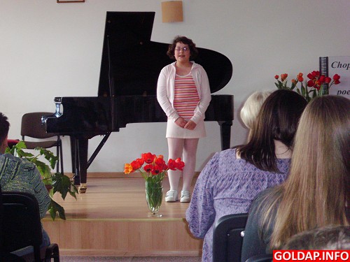 O godzinie 13.00 w sali koncertowej Państwowej Szkoły Muzycznej I st. w Gołdapi odbył się międzyszkolny konkurs dla klas IV-VI szkół podstawowych pt. "Chopin w poezji polskiej". W wzięli w nim udział uczniowie z miejskich szkół pod opieką nauczycieli-polonistów.