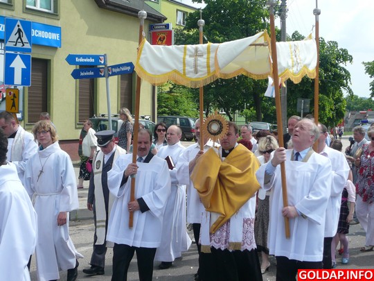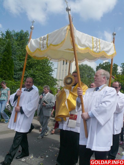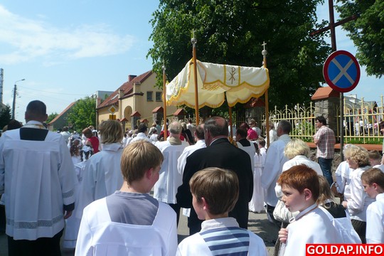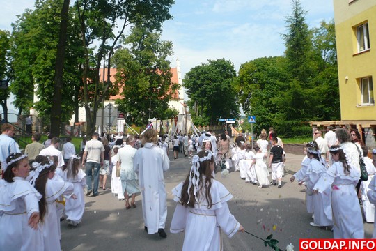 Wielkie święto Eucharystii celebrowane w pierwszy czwartek po pierwszej niedzieli (jedenastego dnia) po Zesłaniu Ducha Świętego - Zielonych Świątkach przypadało w tym roku 3 czerwca. Wierni z trzech gołdapskich parafii wyruszyli tego dnia w procesji, która przeszła ulicami naszego miasta, zatrzymując się kolejno przy czterech ołtarzach.