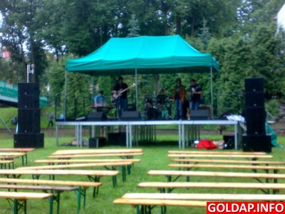 Wczoraj w parku miejskim odbył się koncert zespołu „Linie sił", pochodzącego z Augustowa. Był to występ w ramach „Kulturalnej podróży bez granic", wakacyjnego cyklu imprez organizowanych przez Dom Kultury w Gołdapi. Podobnie jak tydzień temu, pogoda zawiodła mieszkańców. Ławki przed sceną stały mokre i puste. Przybyli melomani znaleźli sobie jednak suche miejsca pod mostem, w parku pod drzewami, a także nieopodal na tarasie restauracji Janczes.